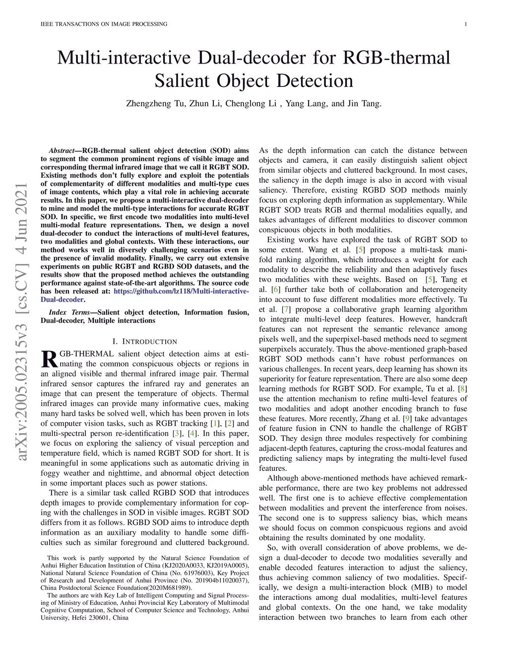 Multi-interactive Dual-decoder for RGB-thermal Salient Object Detection