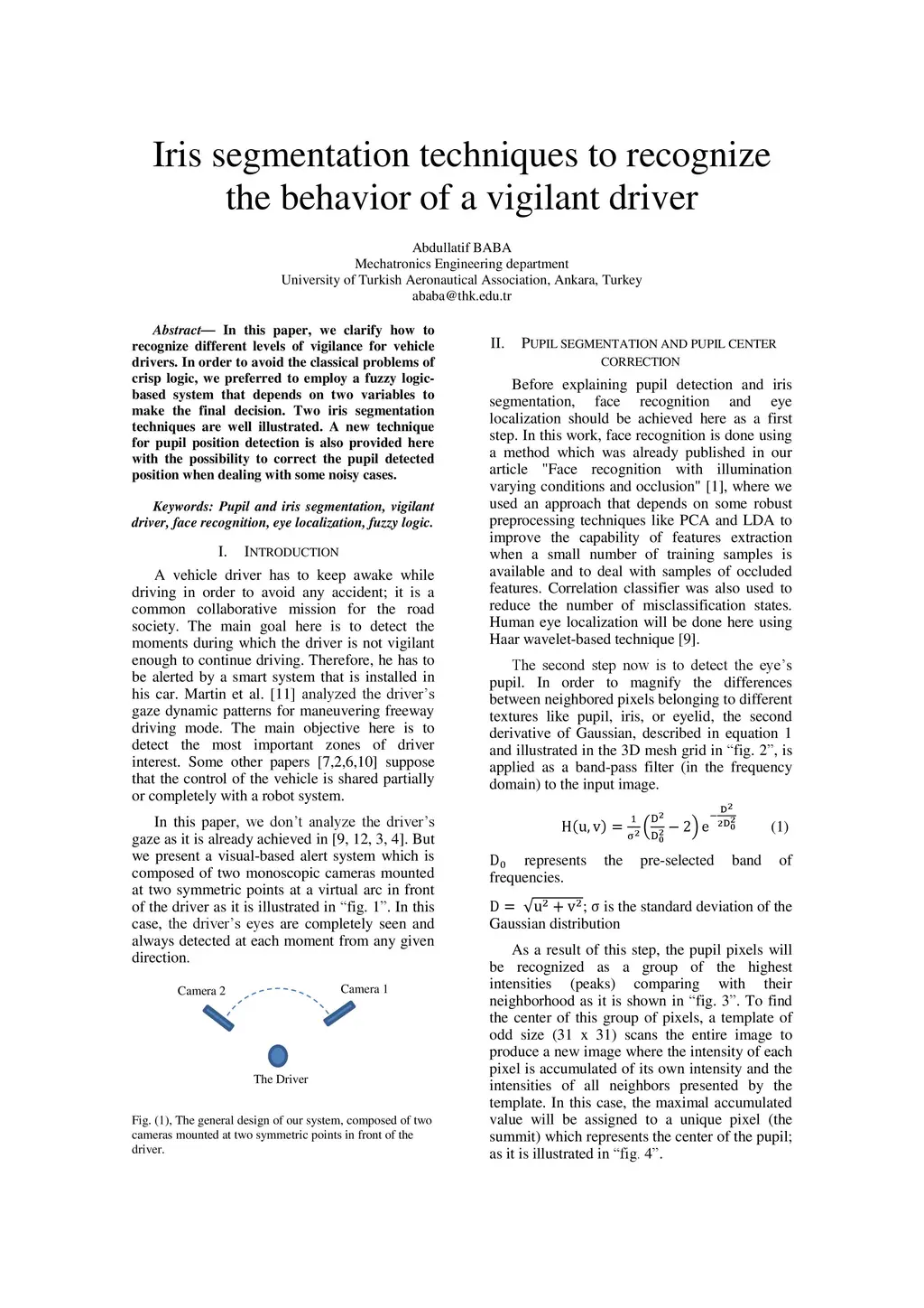 In this paper, we clarify how to recognize different levels of vigilance for vehicle drivers. In order to avoid the classical problems of crisp logic, we preferred to employ a fuzzy logic-based system that depends on two variables to make the final decision. Two iris segmentation techniques are well illustrated. A new technique for pupil position detection is also provided here with the possibility to correct the pupil detected position when dealing with some noisy cases.