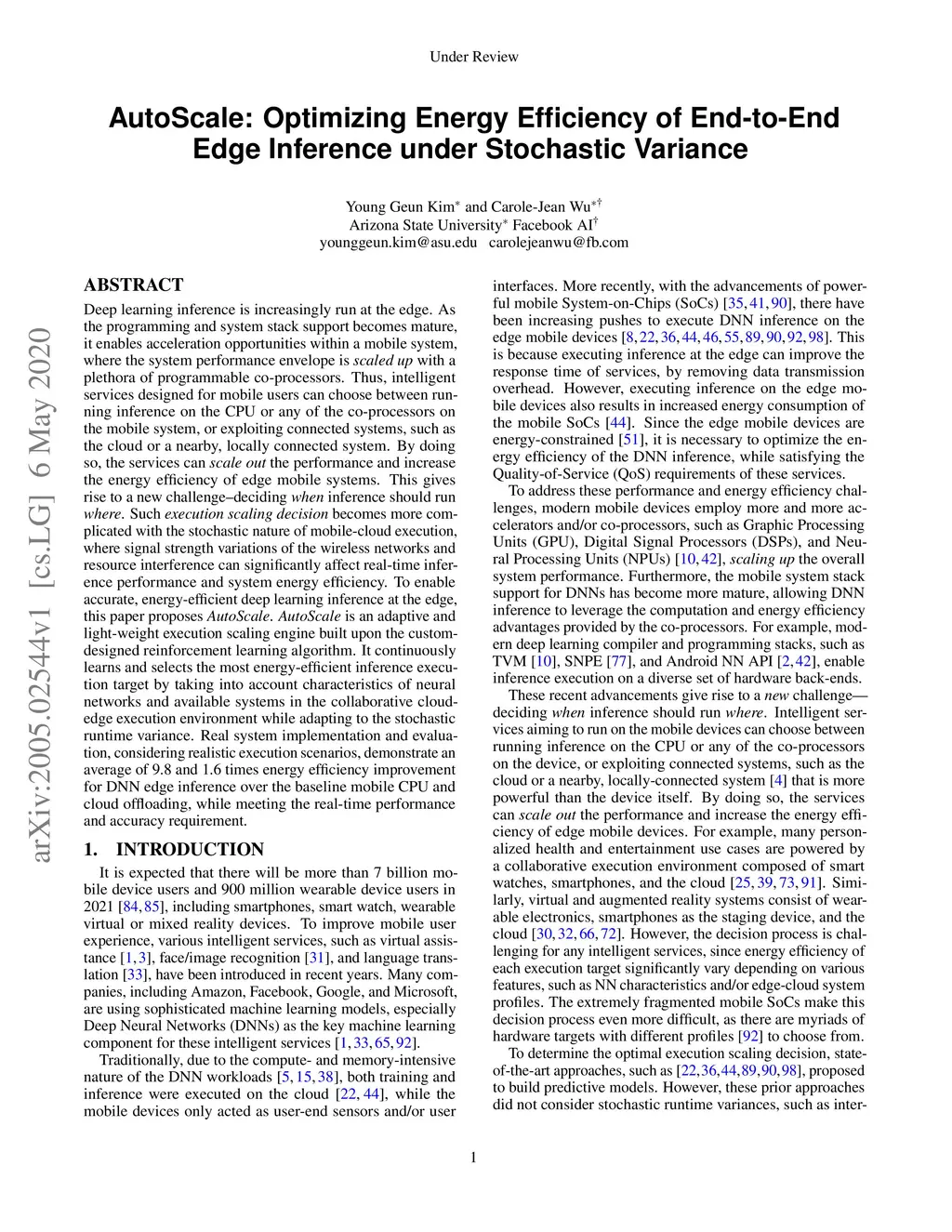 AutoScale: Optimizing Energy Efficiency of End-to-End Edge Inference