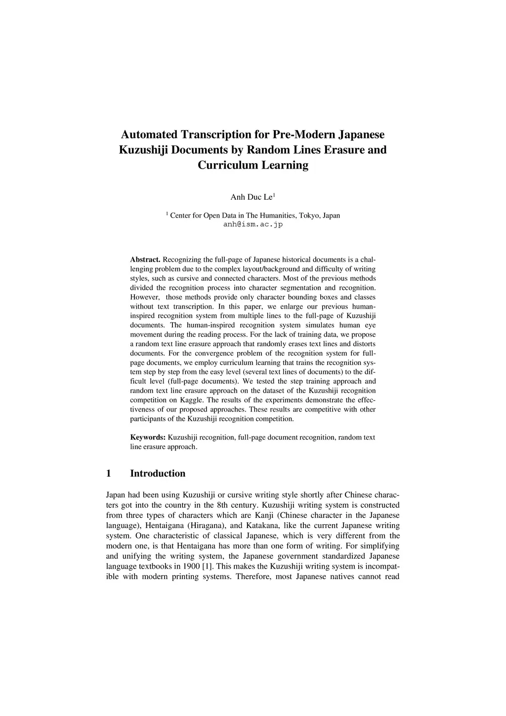 Automated Transcription for Pre-Modern Japanese Kuzushiji Documents by