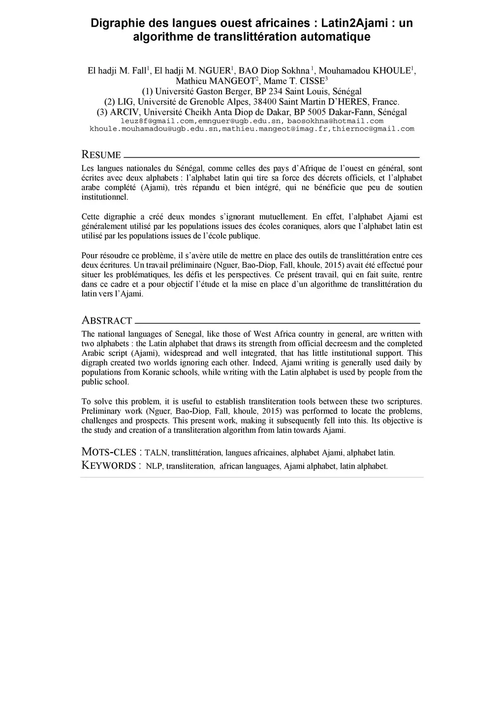 Digraphie des langues ouest africaines : Latin2Ajami : un algorithme de