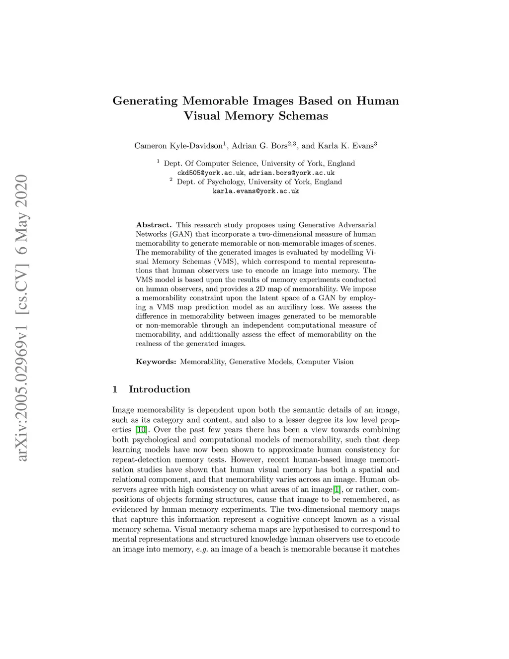 This research study proposes using Generative Adversarial Networks (GAN) that incorporate a two-dimensional measure of human memorability to generate memorable or non-memorable images of scenes. The memorability of the generated images is evaluated by modelling Visual Memory Schemas (VMS), which correspond to mental representations that human observers use to encode an image into memory. The VMS model is based upon the results of memory experiments conducted on human observers, and provides a 2D map of memorability. We impose a memorability constraint upon the latent space of a GAN by employing a VMS map prediction model as an auxiliary loss. We assess the difference in memorability between images generated to be memorable or non-memorable through an independent computational measure of memorability, and additionally assess the effect of memorability on the realness of the generated images.
