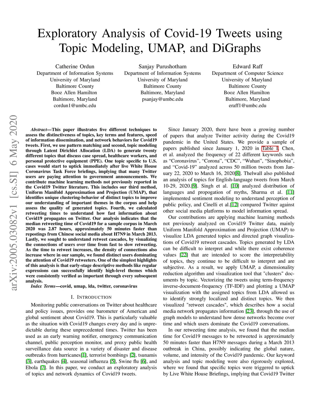 Exploratory Analysis of Covid-19 Tweets using Topic Modeling, UMAP, and