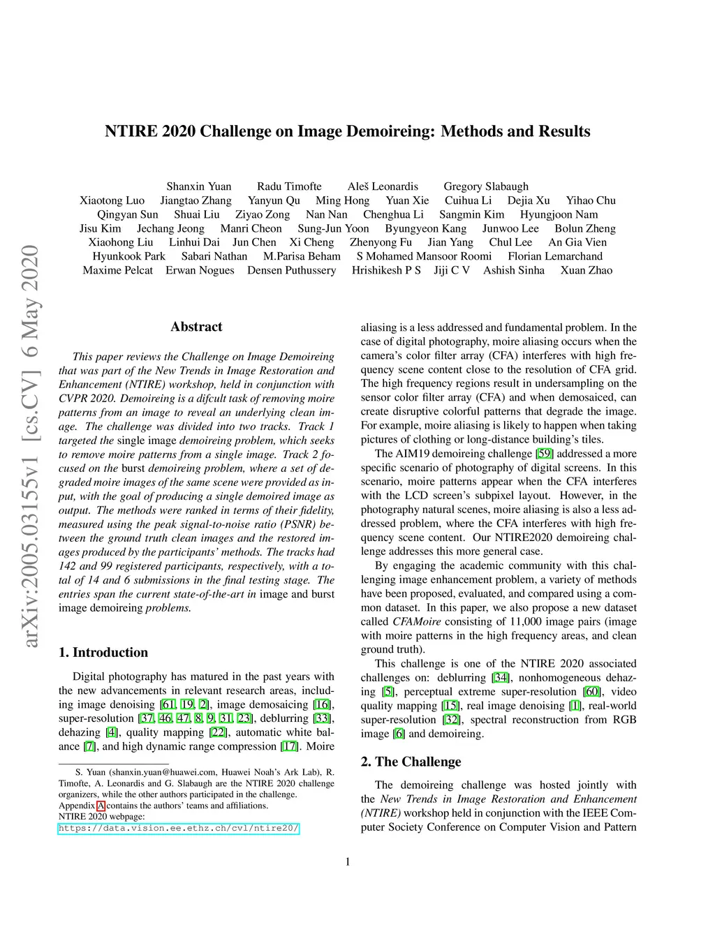 NTIRE 2020 Challenge on Image Demoireing: Methods and Results