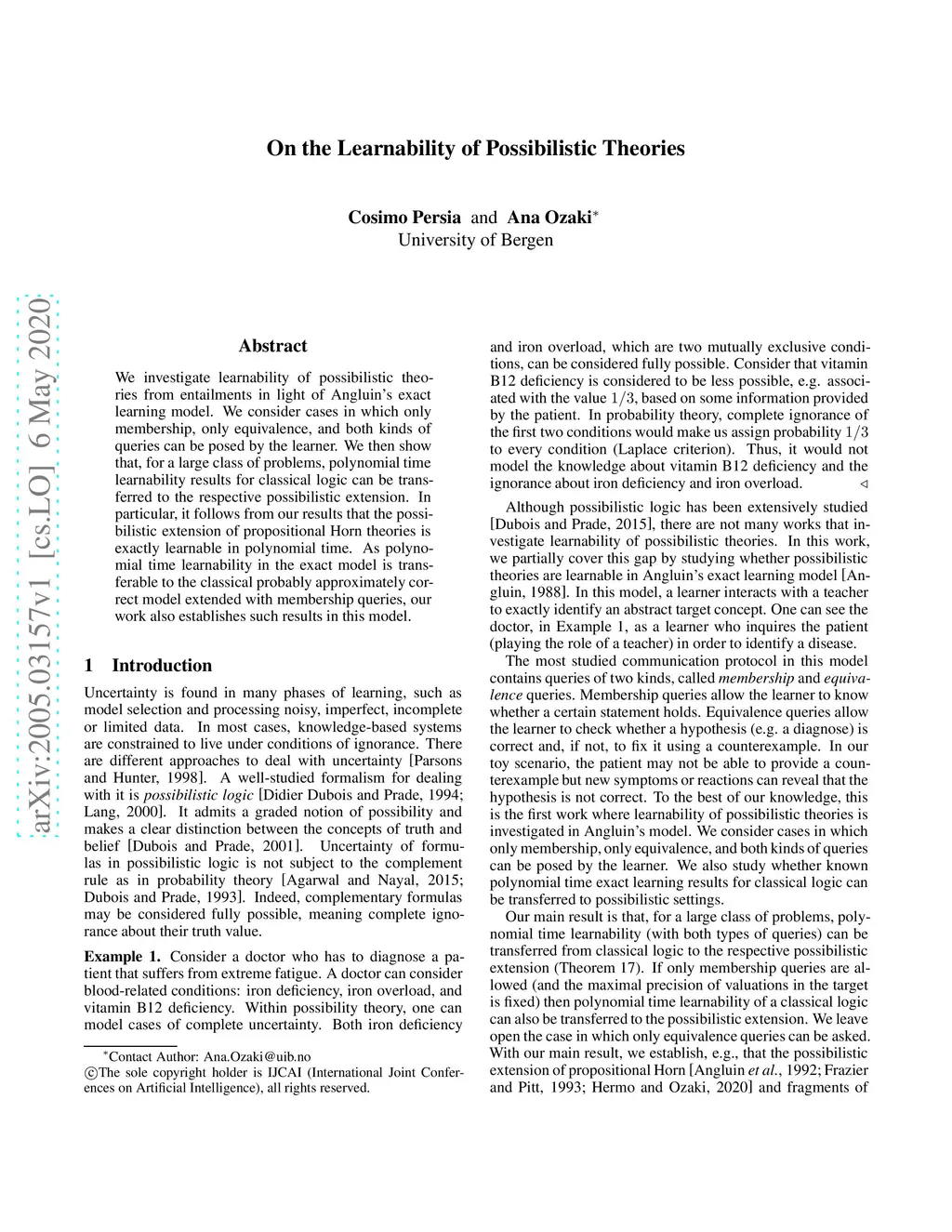 On the Learnability of Possibilistic Theories