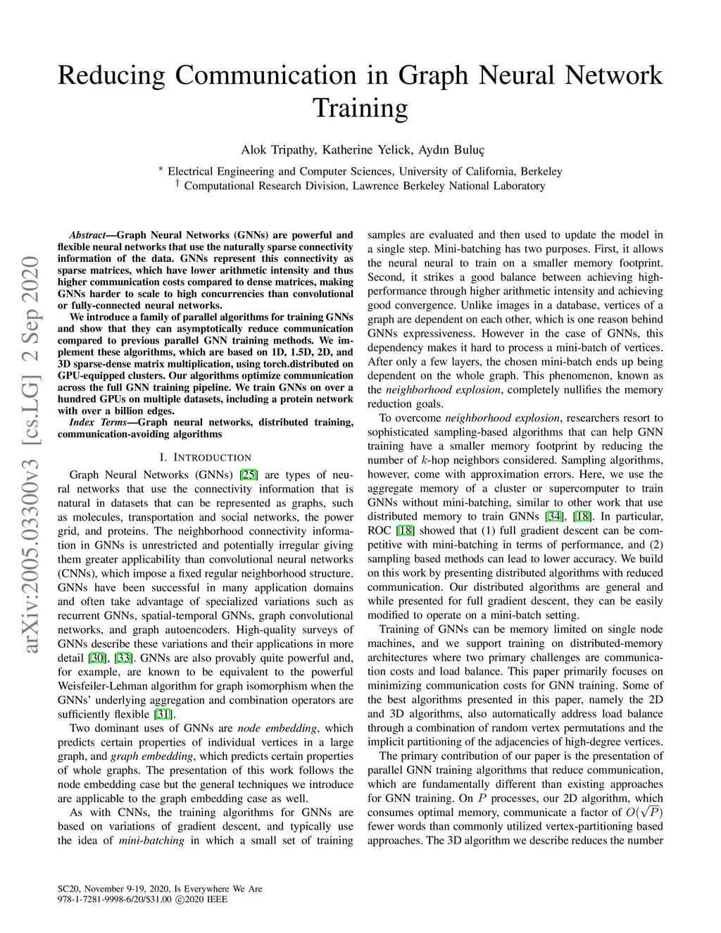 Graph Neural Networks (GNNs) are powerful and flexible neural networks that use the naturally sparse connectivity information of the data. GNNs represent this connectivity as sparse matrices, which have lower arithmetic intensity and thus higher communication costs compared to dense matrices, making GNNs harder to scale to high concurrencies than convolutional or fully-connected neural networks. We introduce a family of parallel algorithms for training GNNs and show that they can asymptotically reduce communication compared to previous parallel GNN training methods. We implement these algorithms, which are based on 1D, 1.5D, 2D, and 3D sparse-dense matrix multiplication, using torch.distributed on GPU-equipped clusters. Our algorithms optimize communication across the full GNN training pipeline. We train GNNs on over a hundred GPUs on multiple datasets, including a protein network with over a billion edges.