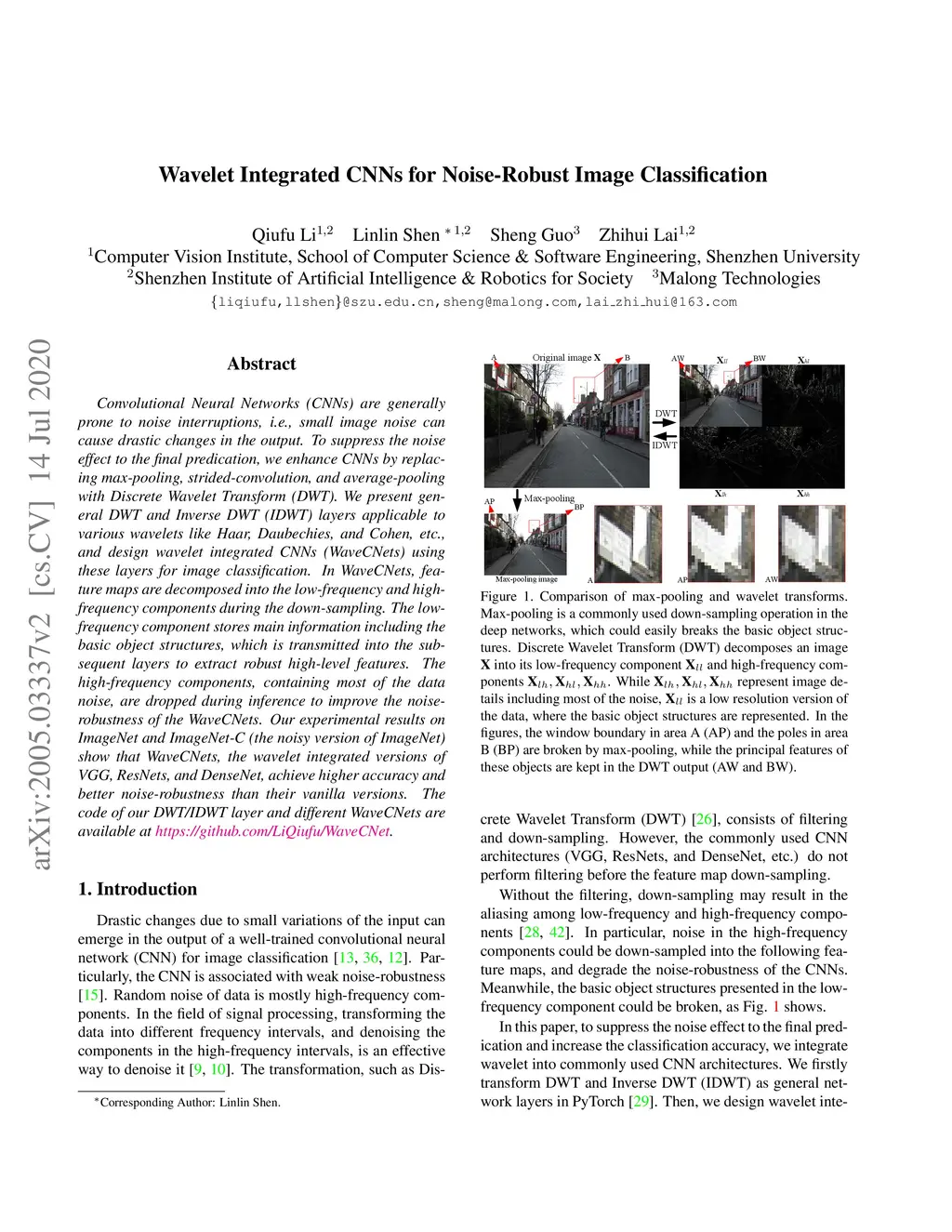 Wavelet Integrated CNNs for Noise-Robust Image Classification
