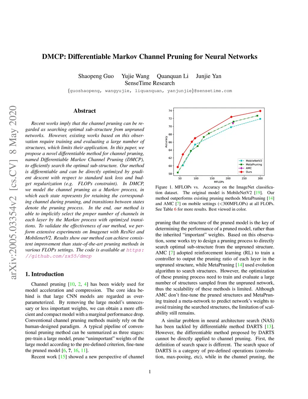 DMCP: Differentiable Markov Channel Pruning for Neural Networks