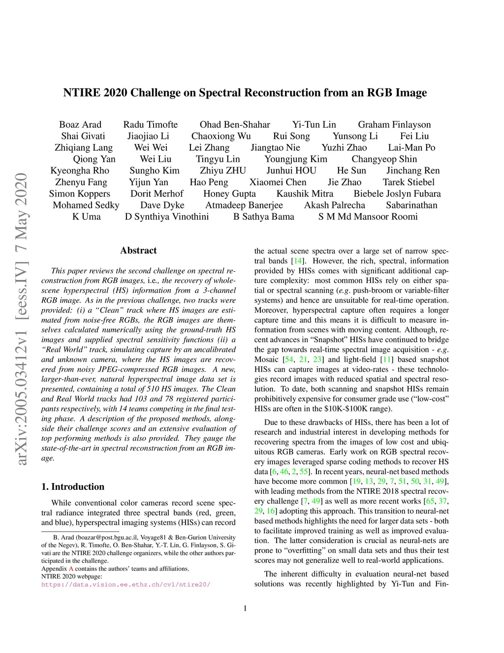 NTIRE 2020 Challenge on Spectral Reconstruction from an RGB Image