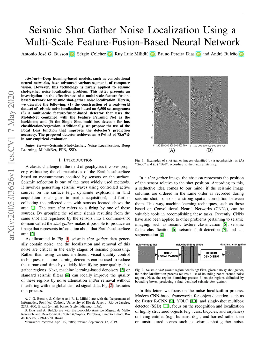 Seismic Shot Gather Noise Localization Using a Multi-Scale