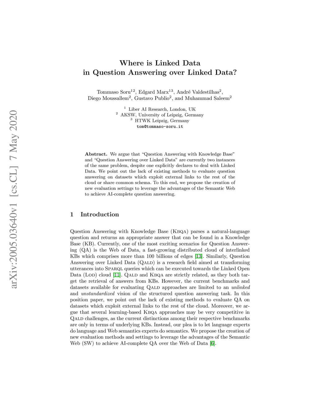 We argue that "Question Answering with Knowledge Base" and "Question Answering over Linked Data" are currently two instances of the same problem, despite one explicitly declares to deal with Linked Data. We point out the lack of existing methods to evaluate question answering on datasets which exploit external links to the rest of the cloud or share common schema. To this end, we propose the creation of new evaluation settings to leverage the advantages of the Semantic Web to achieve AI-complete question answering.