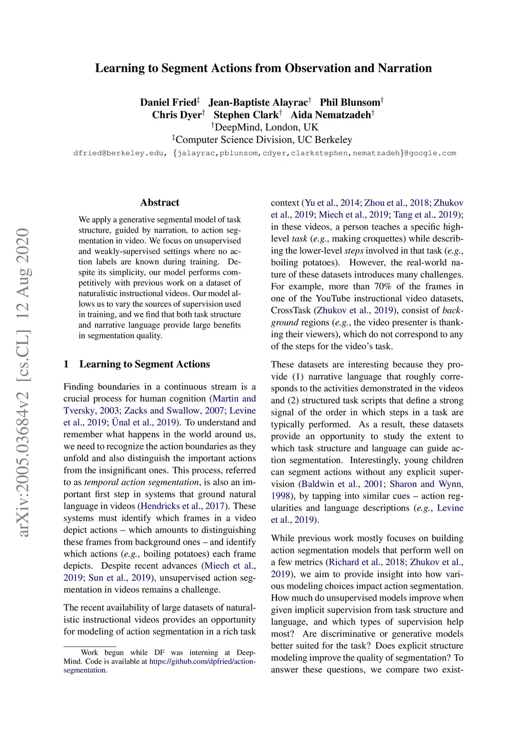 Learning to Segment Actions from Observation and Narration