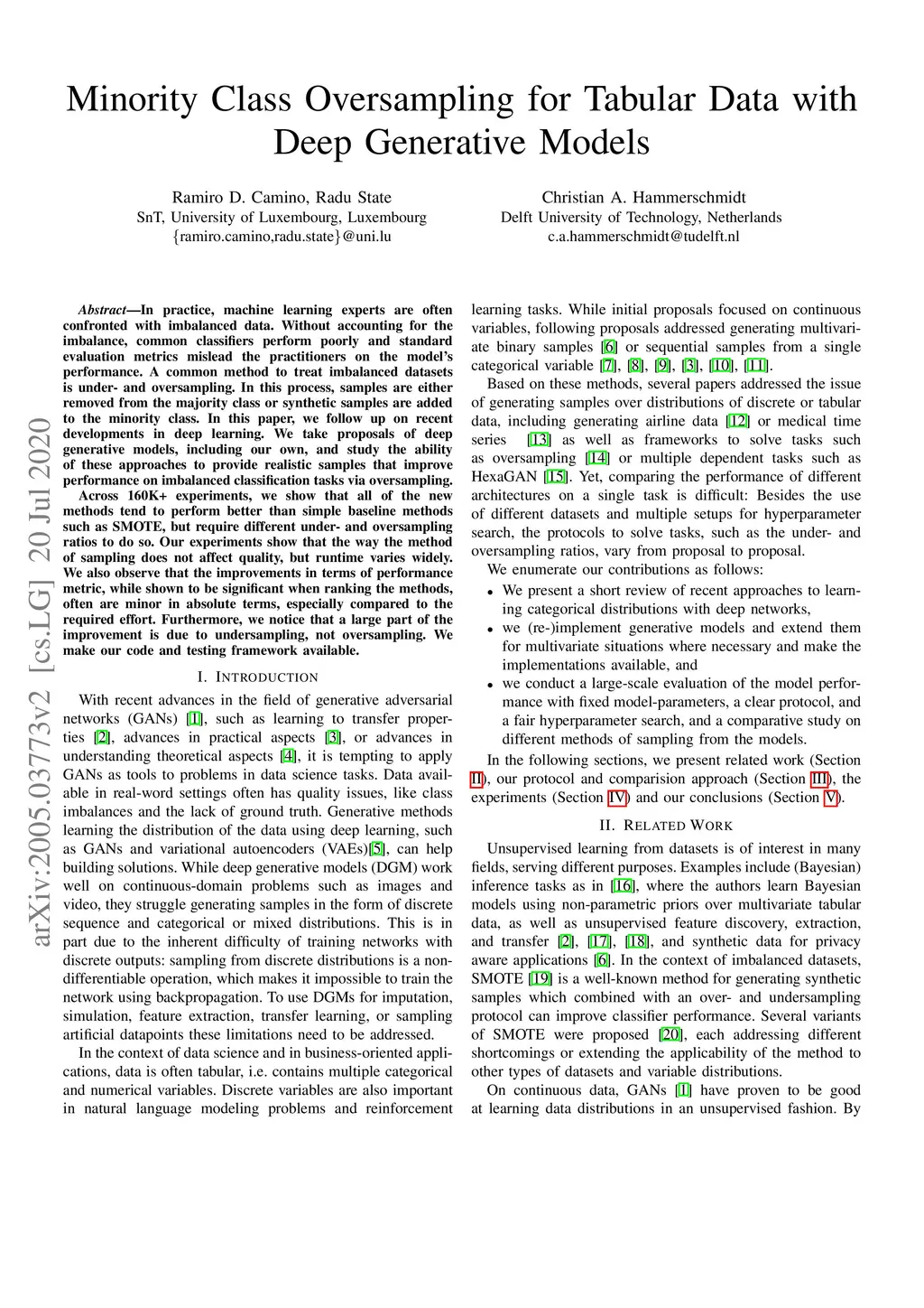 Minority Class Oversampling for Tabular Data with Deep Generative Models