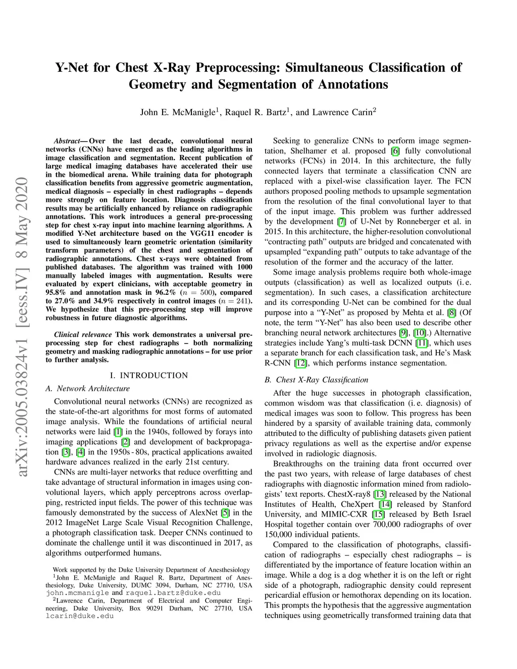 Y-Net for Chest X-Ray Preprocessing: Simultaneous Classification of