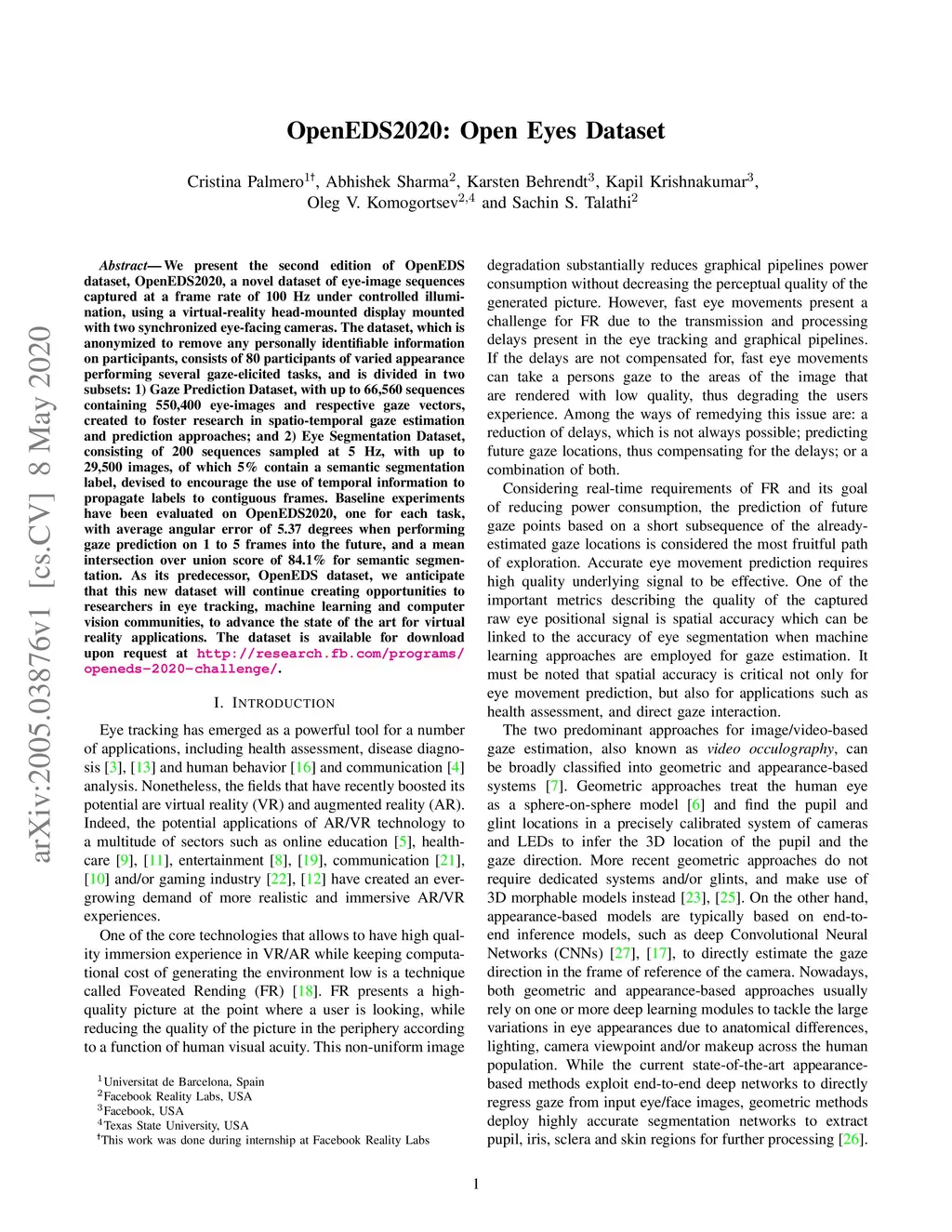 OpenEDS2020: Open Eyes Dataset