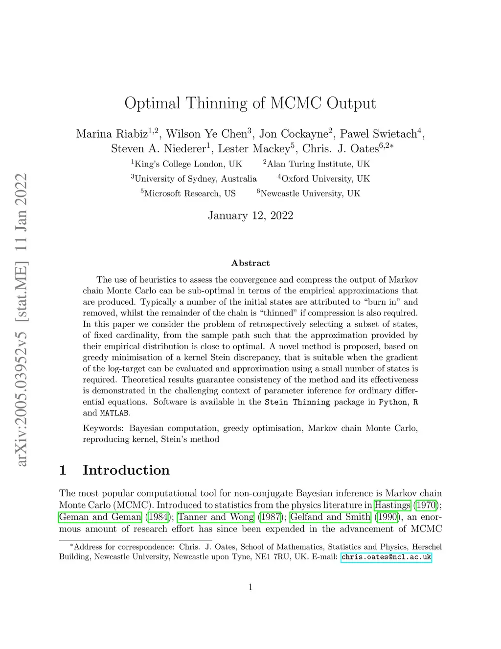 The use of heuristics to assess the convergence and compress the output of Markov chain Monte Carlo can be sub-optimal in terms of the empirical approximations that are produced. Typically a number of the initial states are attributed to "burn in" and removed, whilst the remainder of the chain is "thinned" if compression is also required. In this paper we consider the problem of retrospectively selecting a subset of states, of fixed cardinality, from the sample path such that the approximation provided by their empirical distribution is close to optimal. A novel method is proposed, based on greedy minimisation of a kernel Stein discrepancy, that is suitable for problems where heavy compression is required. Theoretical results guarantee consistency of the method and its effectiveness is demonstrated in the challenging context of parameter inference for ordinary differential equations. Software is available in the Stein Thinning package in Python, R and MATLAB.