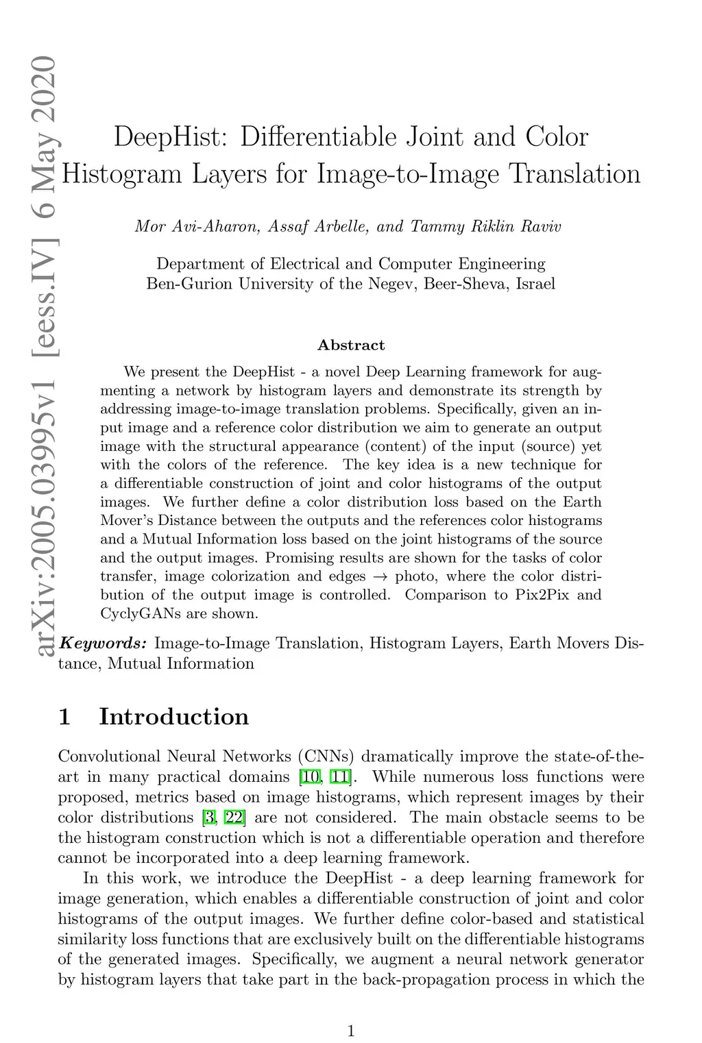 We present the DeepHist - a novel Deep Learning framework for augmenting a network by histogram layers and demonstrate its strength by addressing image-to-image translation problems. Specifically, given an input image and a reference color distribution we aim to generate an output image with the structural appearance (content) of the input (source) yet with the colors of the reference. The key idea is a new technique for a differentiable construction of joint and color histograms of the output images. We further define a color distribution loss based on the Earth Mover's Distance between the output's and the reference's color histograms and a Mutual Information loss based on the joint histograms of the source and the output images. Promising results are shown for the tasks of color transfer, image colorization and edges photo, where the color distribution of the output image is controlled. Comparison to Pix2Pix and CyclyGANs are shown.