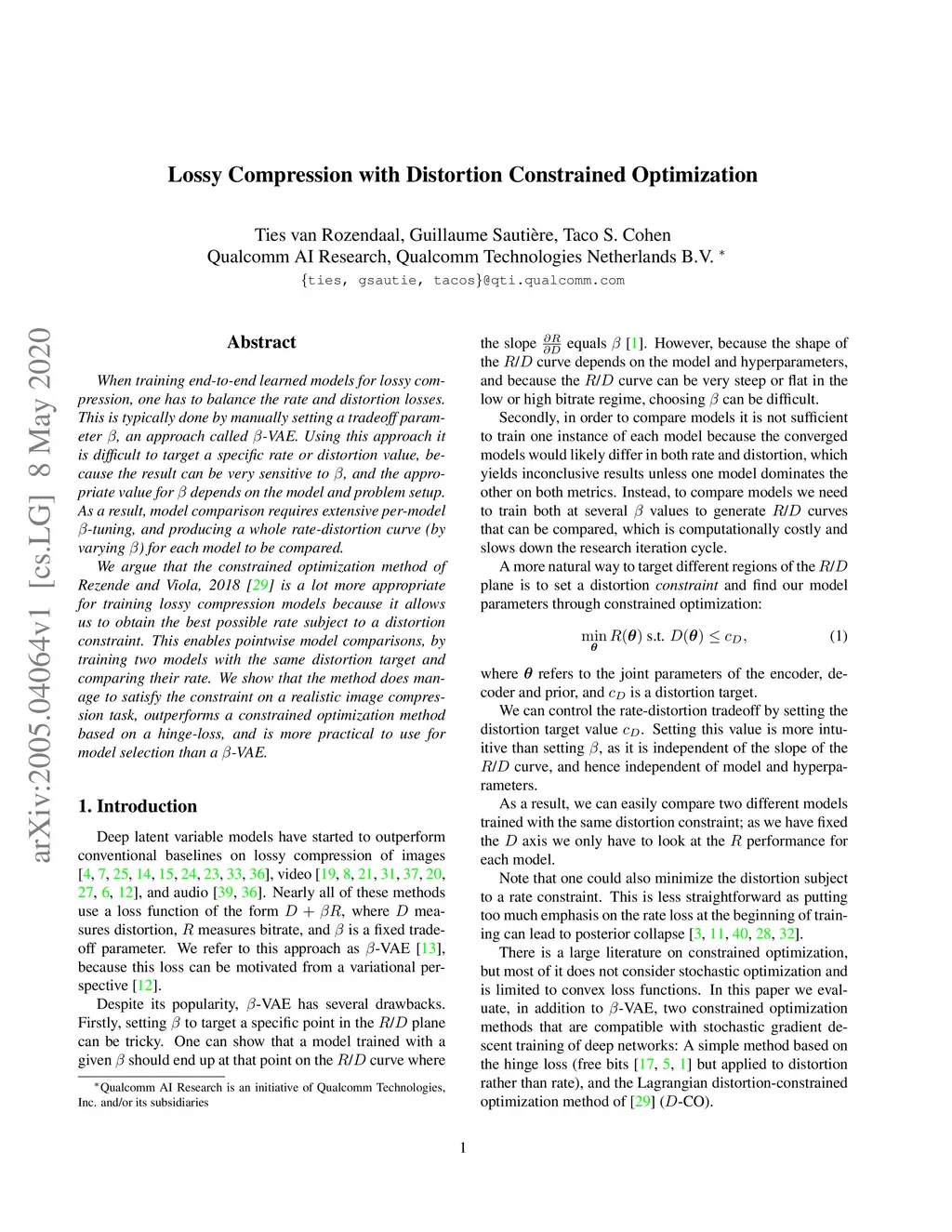 When training end-to-end learned models for lossy compression, one has to balance the rate and distortion losses. This is typically done by manually setting a tradeoff parameter , an approach called -VAE. Using this approach it is difficult to target a specific rate or distortion value, because the result can be very sensitive to , and the appropriate value for depends on the model and problem setup. As a result, model comparison requires extensive per-model -tuning, and producing a whole rate-distortion curve (by varying ) for each model to be compared. We argue that the constrained optimization method of Rezende and Viola, 2018 is a lot more appropriate for training lossy compression models because it allows us to obtain the best possible rate subject to a distortion constraint. This enables pointwise model comparisons, by training two models with the same distortion target and comparing their rate. We show that the method does manage to satisfy the constraint on a realistic image compression task, outperforms a constrained optimization method based on a hinge-loss, and is more practical to use for model selection than a -VAE.