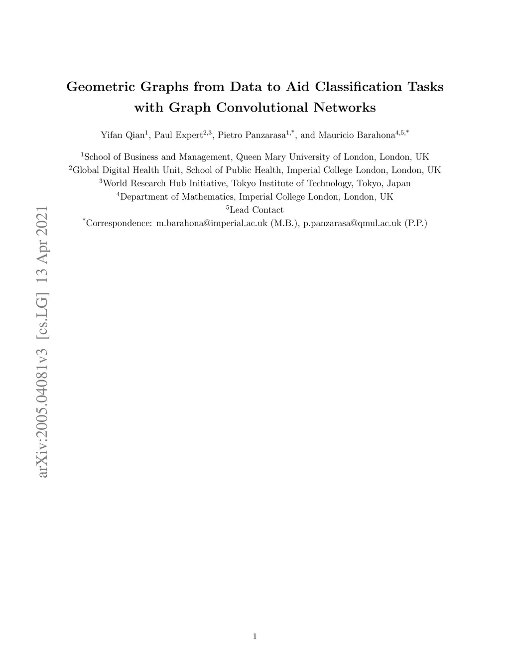 Traditional classification tasks learn to assign samples to given classes based solely on sample features. This paradigm is evolving to include other sources of information, such as known relations between samples. Here we show that, even if additional relational information is not available in the data set, one can improve classification by constructing geometric graphs from the features themselves, and using them within a Graph Convolutional Network. The improvement in classification accuracy is maximized by graphs that capture sample similarity with relatively low edge density. We show that such feature-derived graphs increase the alignment of the data to the ground truth while improving class separation. We also demonstrate that the graphs can be made more efficient using spectral sparsification, which reduces the number of edges while still improving classification performance. We illustrate our findings using synthetic and real-world data sets from various scientific domains.