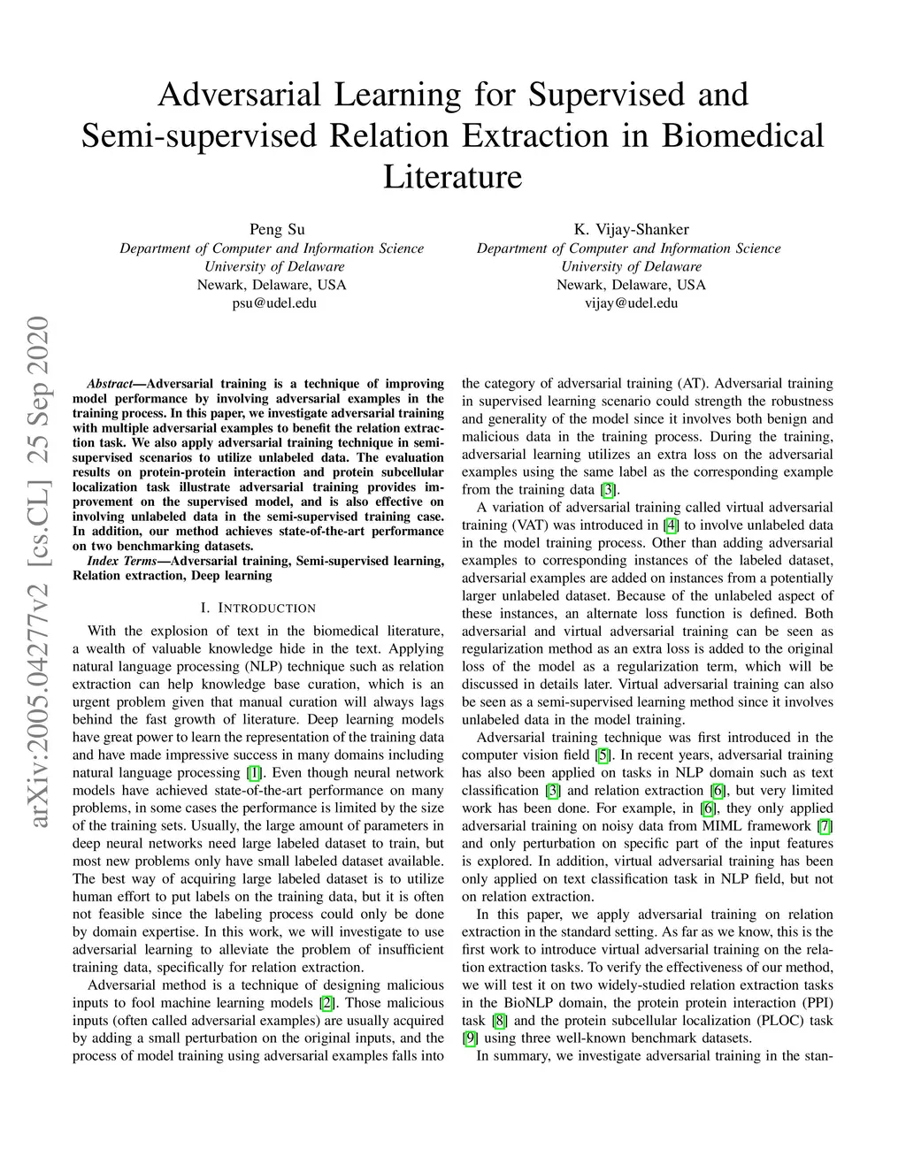 Adversarial Learning for Supervised and Semi-supervised Relation