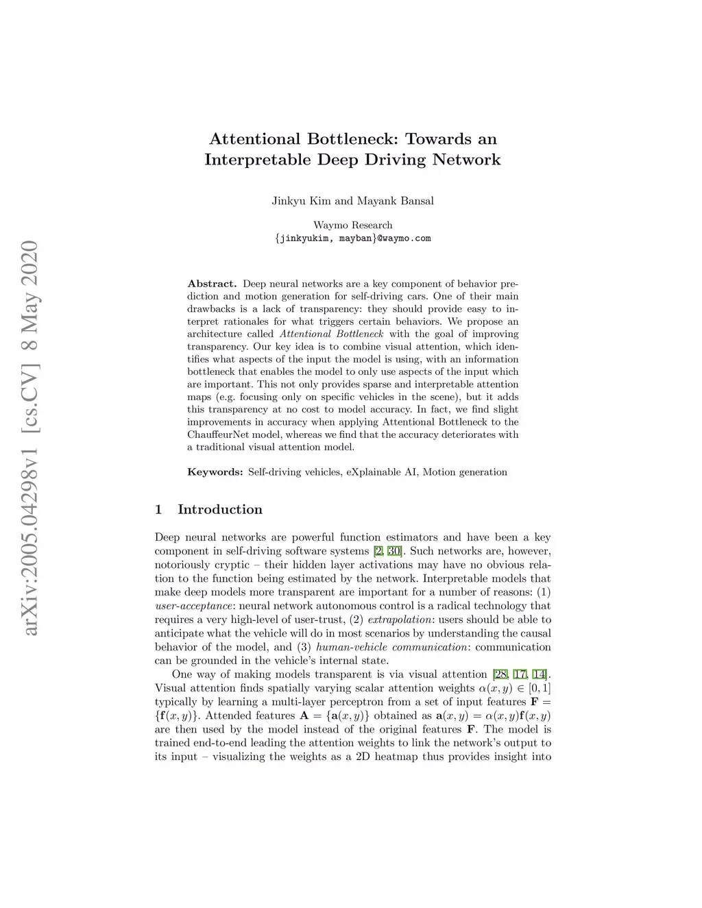 Attentional Bottleneck: Towards an Interpretable Deep Driving Network