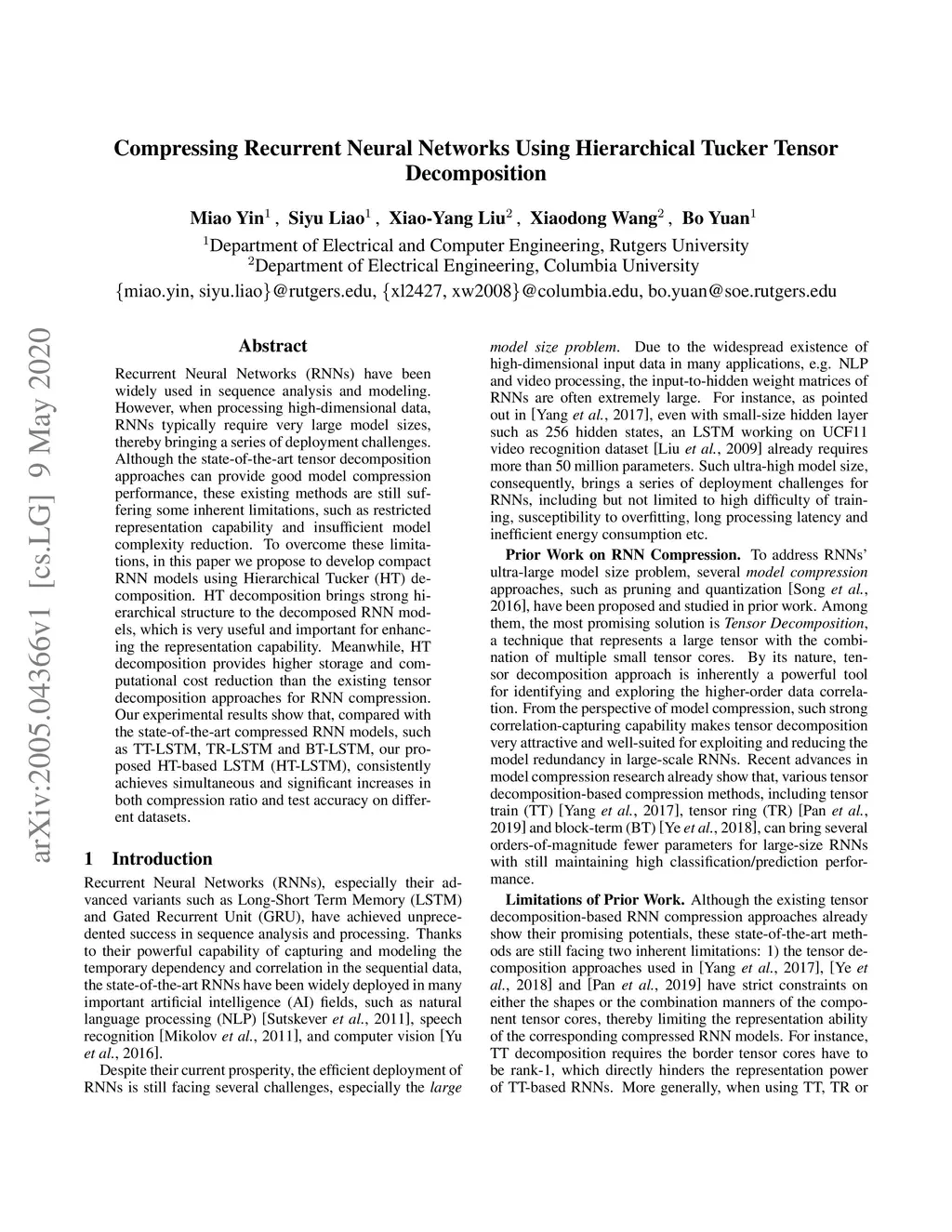 Compressing Recurrent Neural Networks Using Hierarchical Tucker Tensor