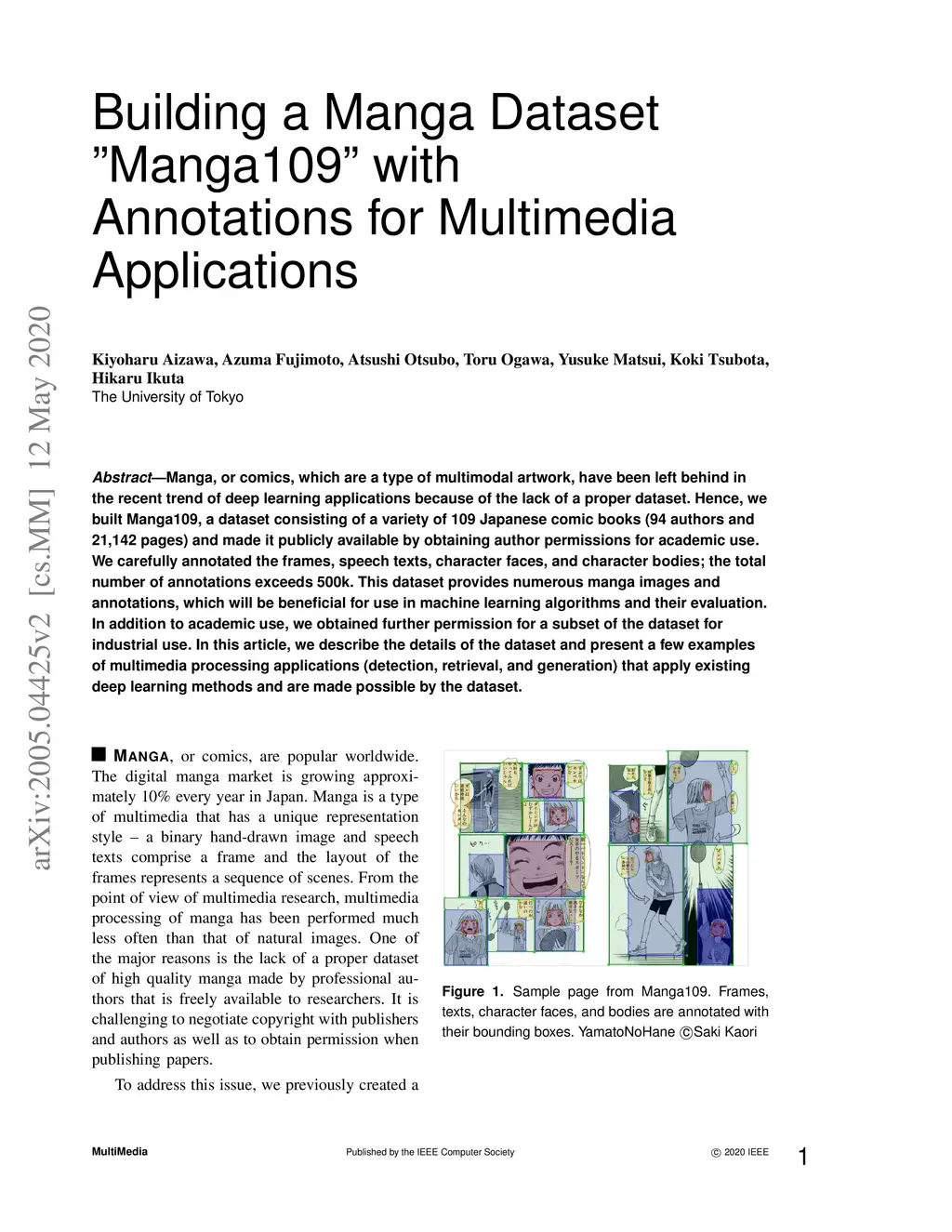 Building a Manga Dataset "Manga109" with Annotations for Multimedia
