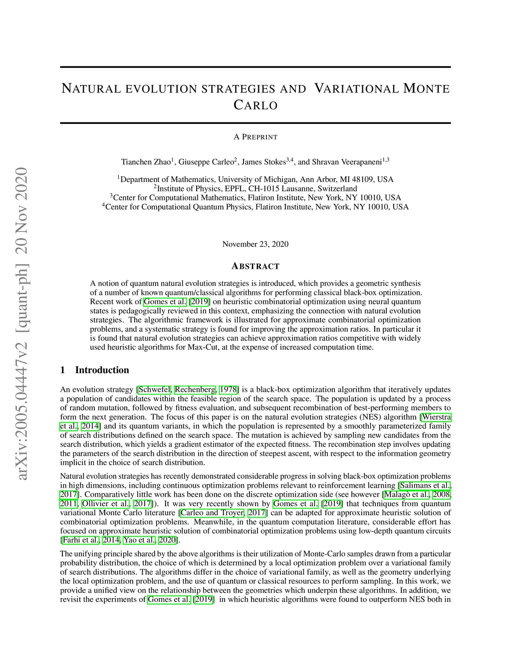 Natural evolution strategies and variational Monte Carlo