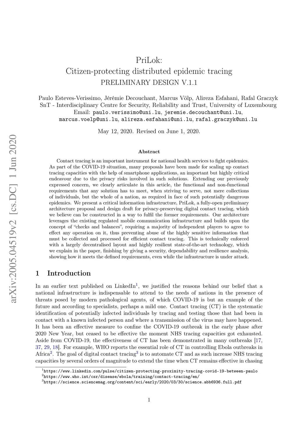Contact tracing is an important instrument for national health services to fight epidemics. As part of the COVID-19 situation, many proposals have been made for scaling up contract tracing capacities with the help of smartphone applications, an important but highly critical endeavor due to the privacy risks involved in such solutions. Extending our previously expressed concern, we clearly articulate in this article, the functional and non-functional requirements that any solution has to meet, when striving to serve, not mere collections of individuals, but the whole of a nation, as required in face of such potentially dangerous epidemics. We present a critical information infrastructure, PriLock, a fully-open preliminary architecture proposal and design draft for privacy preserving contact tracing, which we believe can be constructed in a way to fulfill the former requirements. Our architecture leverages the existing regulated mobile communication infrastructure and builds upon the concept of "checks and balances", requiring a majority of independent players to agree to effect any operation on it, thus preventing abuse of the highly sensitive information that must be collected and processed for efficient contact tracing. This is enforced with a largely decentralised layout and highly resilient state-of-the-art technology, which we explain in the paper, finishing by giving a security, dependability and resilience analysis, showing how it meets the defined requirements, even while the infrastructure is under attack.