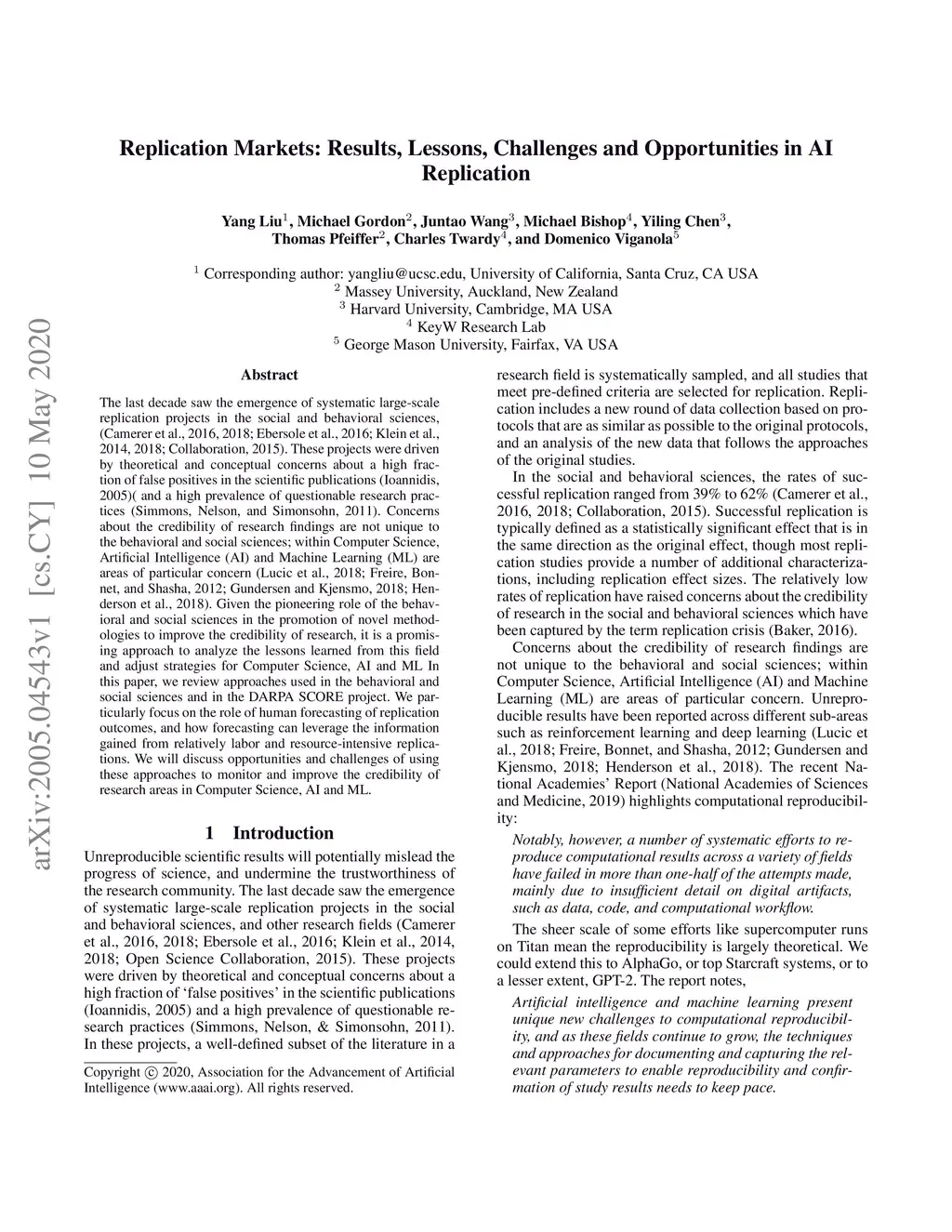 The last decade saw the emergence of systematic large-scale replication projects in the social and behavioral sciences, (Camerer et al., 2016, 2018; Ebersole et al., 2016; Klein et al., 2014, 2018; Collaboration, 2015). These projects were driven by theoretical and conceptual concerns about a high fraction of "false positives" in the scientific publications (Ioannidis, 2005) (and a high prevalence of "questionable research practices" (Simmons, Nelson, and Simonsohn, 2011). Concerns about the credibility of research findings are not unique to the behavioral and social sciences; within Computer Science, Artificial Intelligence (AI) and Machine Learning (ML) are areas of particular concern (Lucic et al., 2018; Freire, Bonnet, and Shasha, 2012; Gundersen and Kjensmo, 2018; Henderson et al., 2018). Given the pioneering role of the behavioral and social sciences in the promotion of novel methodologies to improve the credibility of research, it is a promising approach to analyze the lessons learned from this field and adjust strategies for Computer Science, AI and ML In this paper, we review approaches used in the behavioral and social sciences and in the DARPA SCORE project. We particularly focus on the role of human forecasting of replication outcomes, and how forecasting can leverage the information gained from relatively labor and resource-intensive replications. We will discuss opportunities and challenges of using these approaches to monitor and improve the credibility of research areas in Computer Science, AI, and ML.