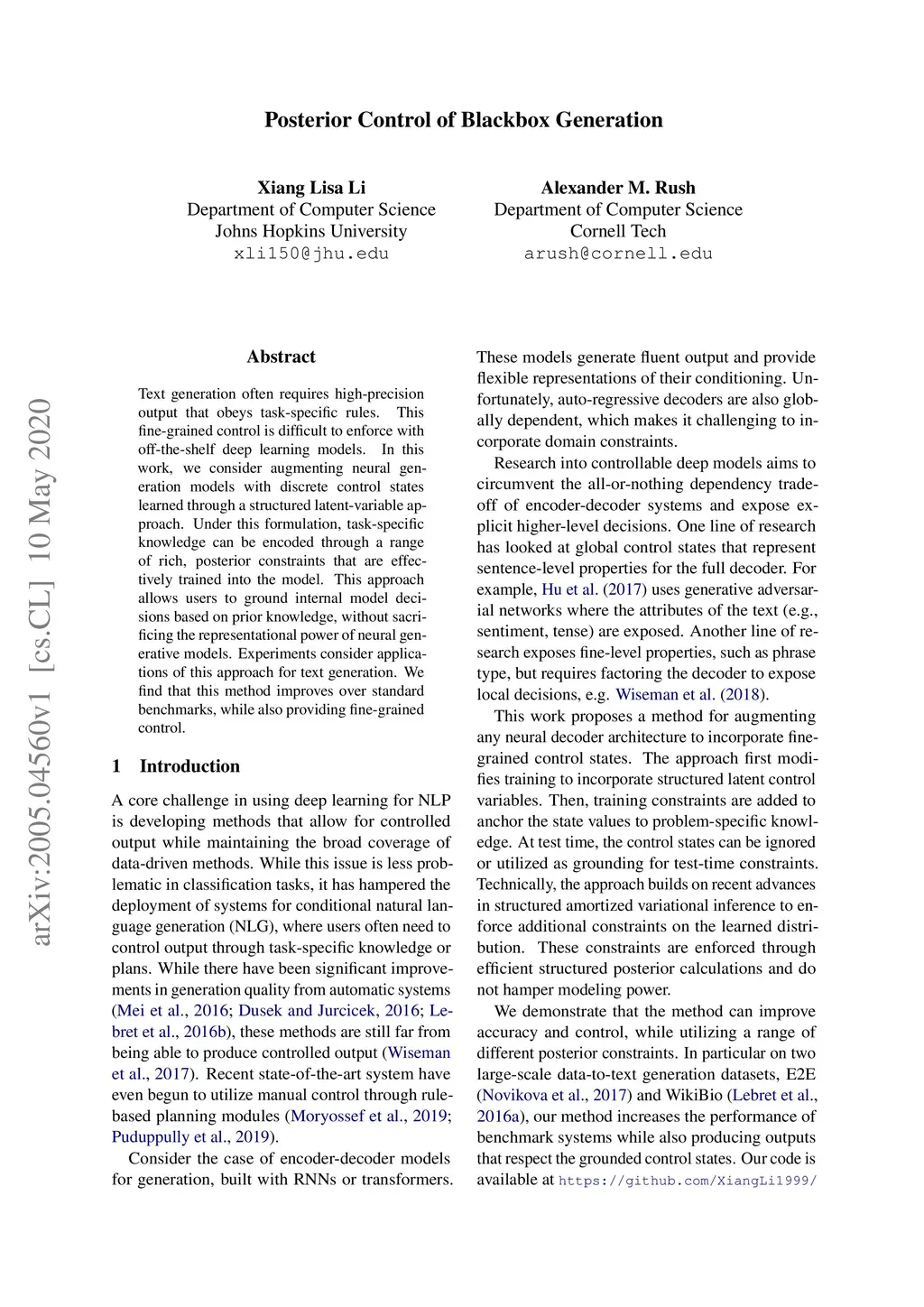 Posterior Control of Blackbox Generation