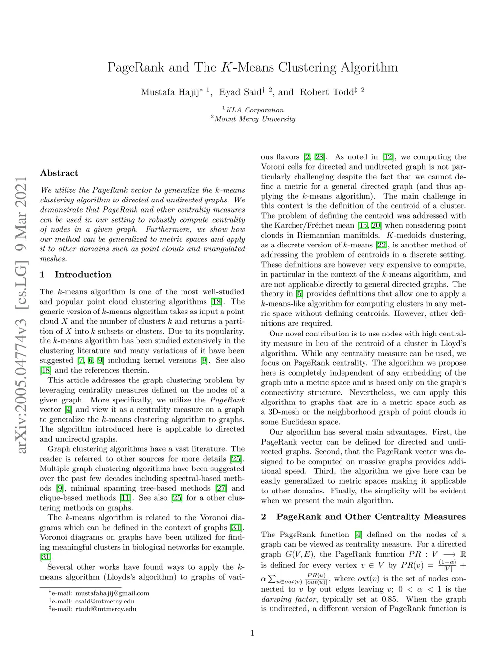PageRank and The K-Means Clustering Algorithm