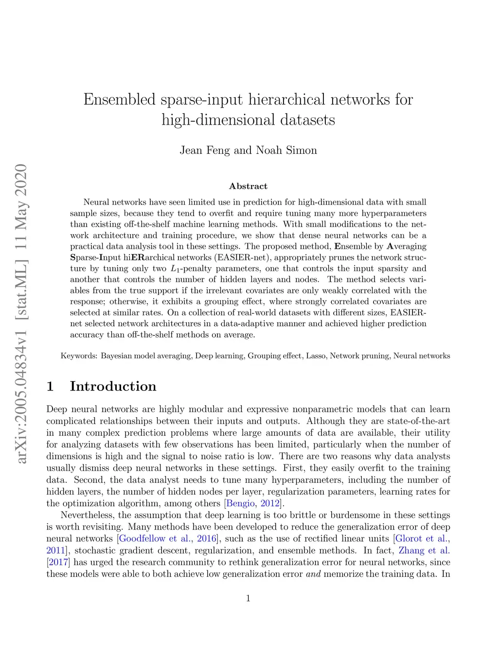Ensembled sparse-input hierarchical networks for high-dimensional