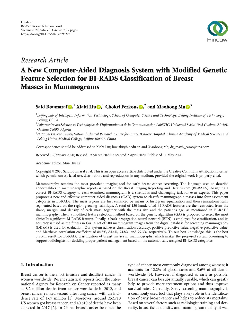 A New Computer-Aided Diagnosis System with Modified Genetic Feature