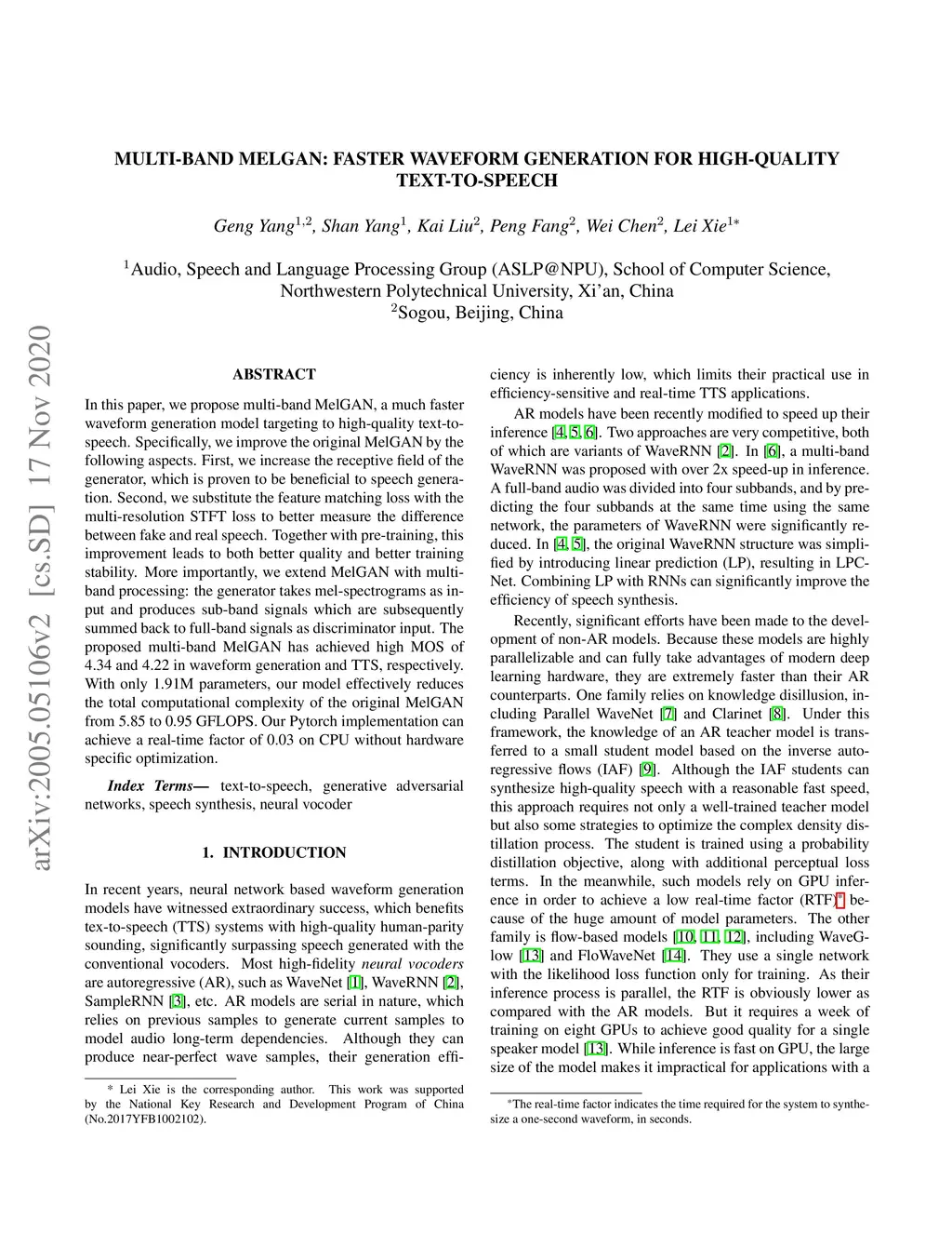 Multi-band MelGAN: Faster Waveform Generation for High-Quality Text-to-Speech