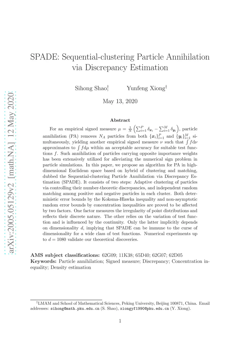 SPADE: Sequential-clustering Particle Annihilation via Discrepancy