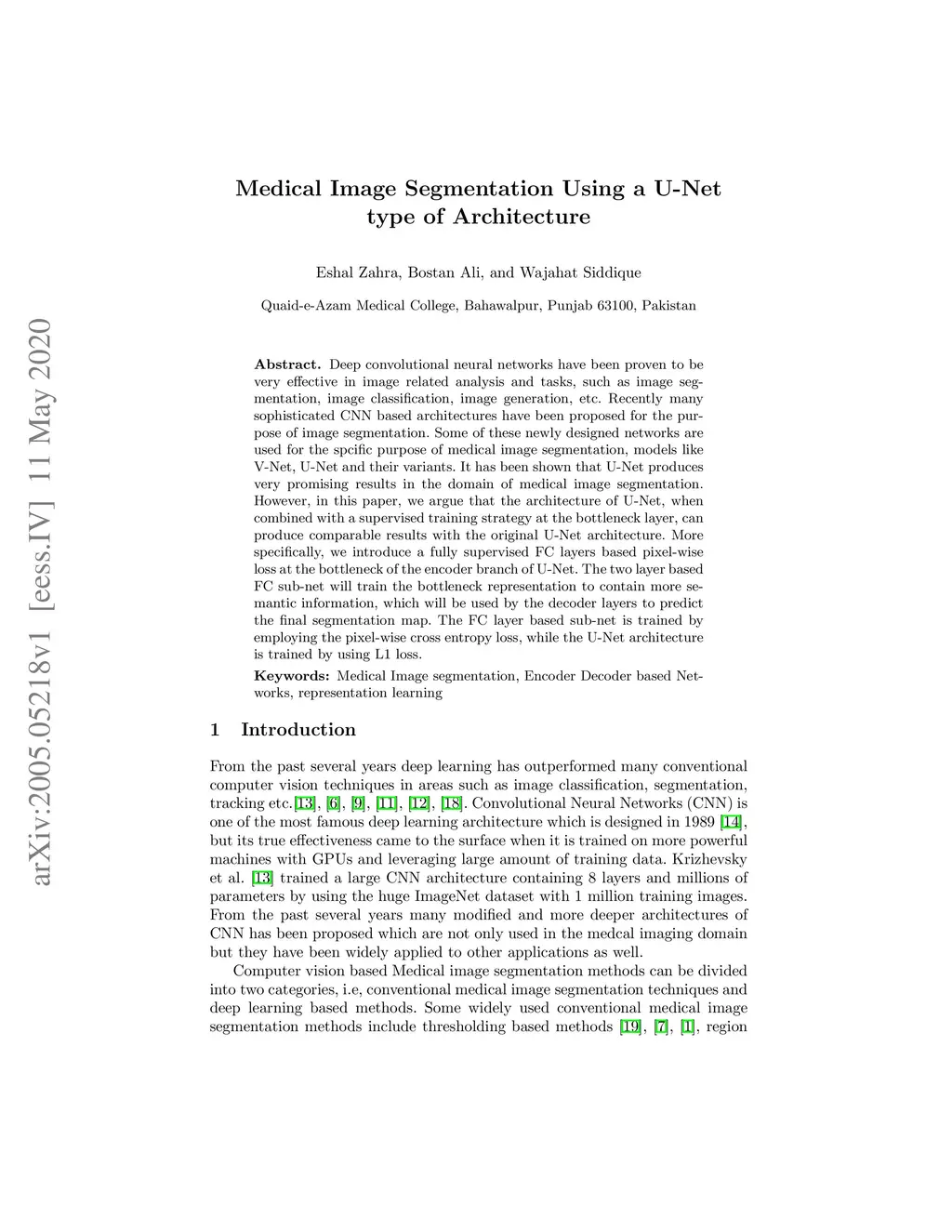 Deep convolutional neural networks have been proven to be very effective in image related analysis and tasks, such as image segmentation, image classification, image generation, etc. Recently many sophisticated CNN based architectures have been proposed for the purpose of image segmentation. Some of these newly designed networks are used for the specific purpose of medical image segmentation, models like V-Net, U-Net and their variants. It has been shown that U-Net produces very promising results in the domain of medical image segmentation.However, in this paper, we argue that the architecture of U-Net, when combined with a supervised training strategy at the bottleneck layer, can produce comparable results with the original U-Net architecture. More specifically, we introduce a fully supervised FC layers based pixel-wise loss at the bottleneck of the encoder branch of U-Net. The two layer based FC sub-net will train the bottleneck representation to contain more semantic information, which will be used by the decoder layers to predict the final segmentation map. The FC layer based sub-net is trained by employing the pixel-wise cross entropy loss, while the U-Net architectures trained by using L1 loss.