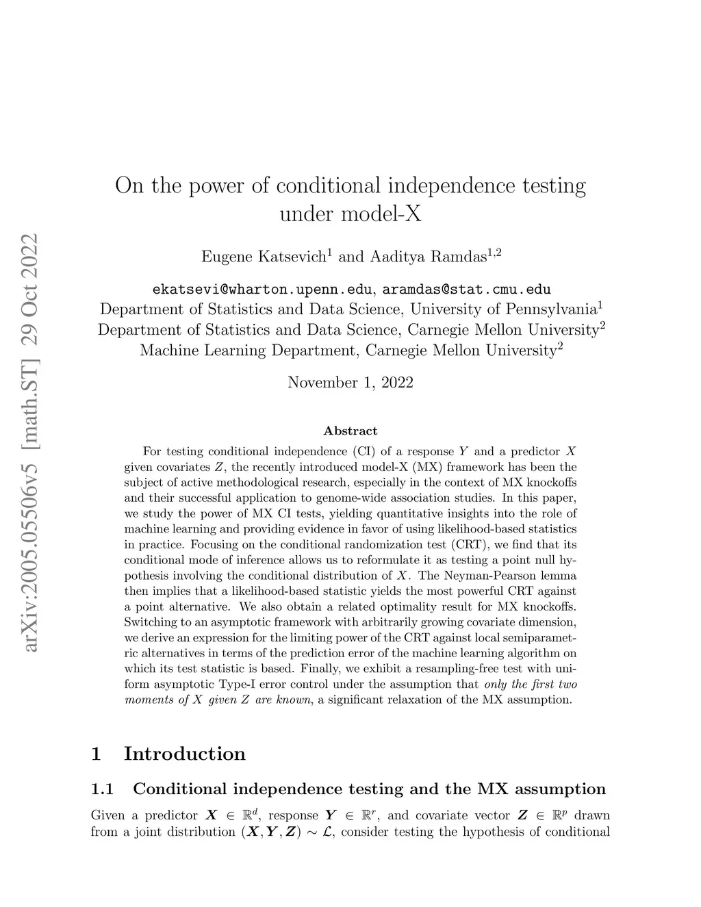 On the power of conditional independence testing under model-X