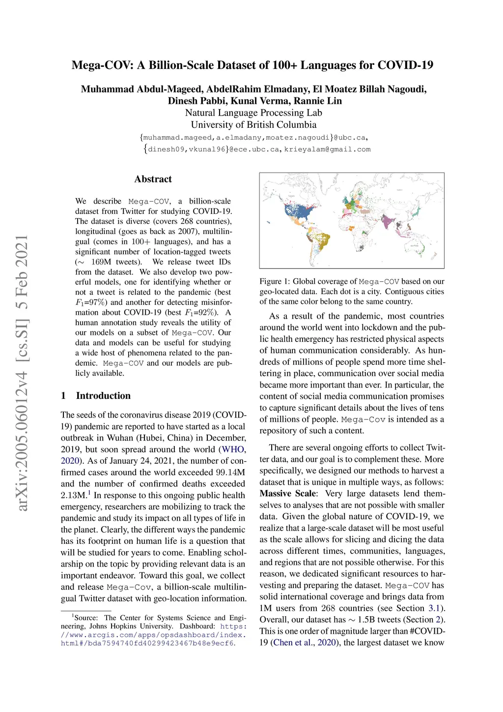 Mega-COV: A Billion-Scale Dataset of 100+ Languages for COVID-19