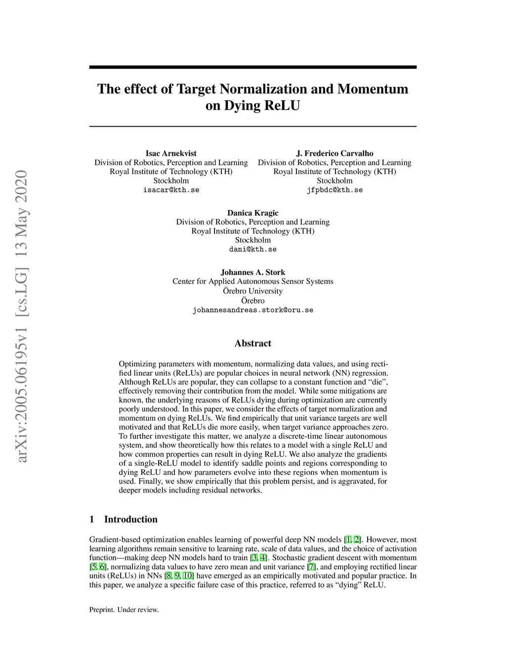 The effect of Target Normalization and Momentum on Dying ReLU