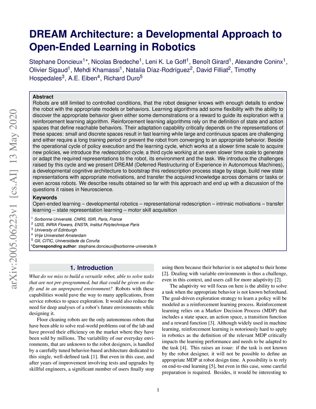 DREAM Architecture: a Developmental Approach to Open-Ended Learning in
