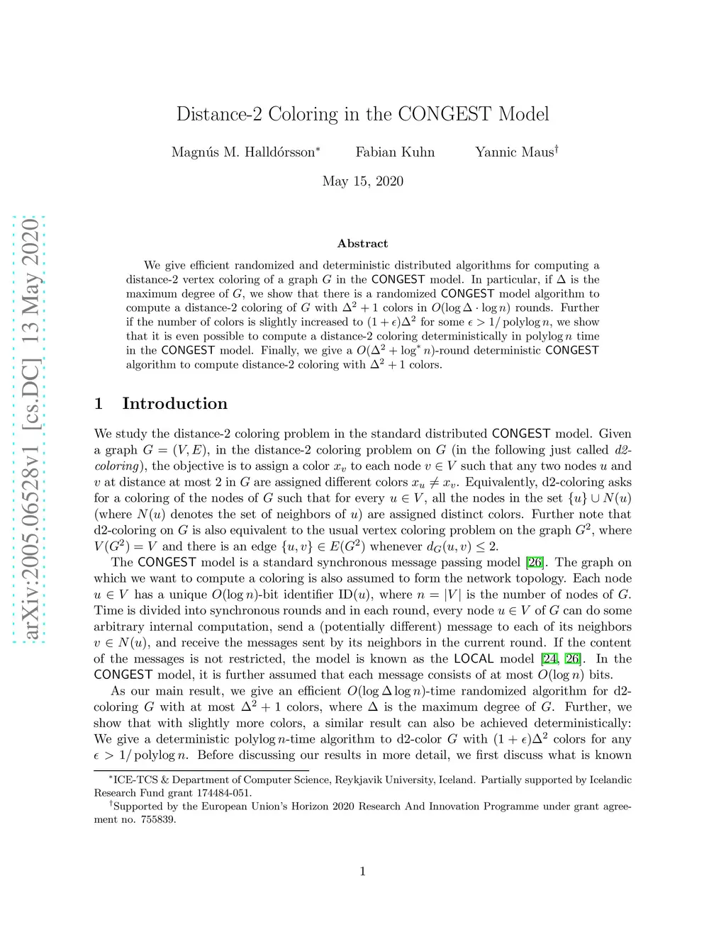 We give efficient randomized and deterministic distributed algorithms for computing a distance- vertex coloring of a graph in the CONGEST model. In particular, if is the maximum degree of , we show that there is a randomized CONGEST model algorithm to compute a distance- coloring of with colors in rounds. Further if the number of colors is slightly increased to for some , we show that it is even possible to compute a distance- coloring deterministically in polylog time in the CONGEST model. Finally, we give a -round deterministic CONGEST algorithm to compute distance- coloring with colors.