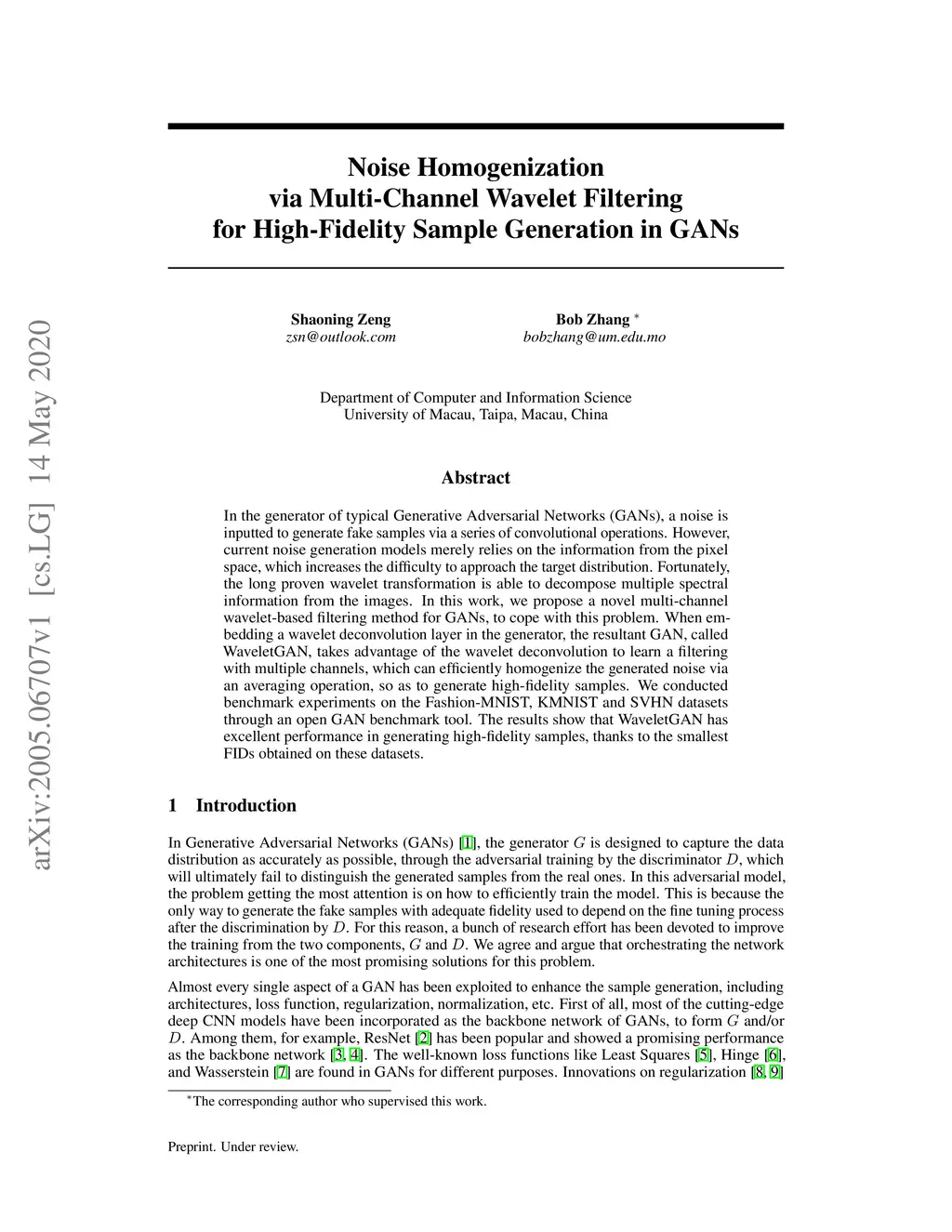 In the generator of typical Generative Adversarial Networks (GANs), a noise is inputted to generate fake samples via a series of convolutional operations. However, current noise generation models merely relies on the information from the pixel space, which increases the difficulty to approach the target distribution. Fortunately, the long proven wavelet transformation is able to decompose multiple spectral information from the images. In this work, we propose a novel multi-channel wavelet-based filtering method for GANs, to cope with this problem. When embedding a wavelet deconvolution layer in the generator, the resultant GAN, called WaveletGAN, takes advantage of the wavelet deconvolution to learn a filtering with multiple channels, which can efficiently homogenize the generated noise via an averaging operation, so as to generate high-fidelity samples. We conducted benchmark experiments on the Fashion-MNIST, KMNIST and SVHN datasets through an open GAN benchmark tool. The results show that WaveletGAN has excellent performance in generating high-fidelity samples, thanks to the smallest FIDs obtained on these datasets.