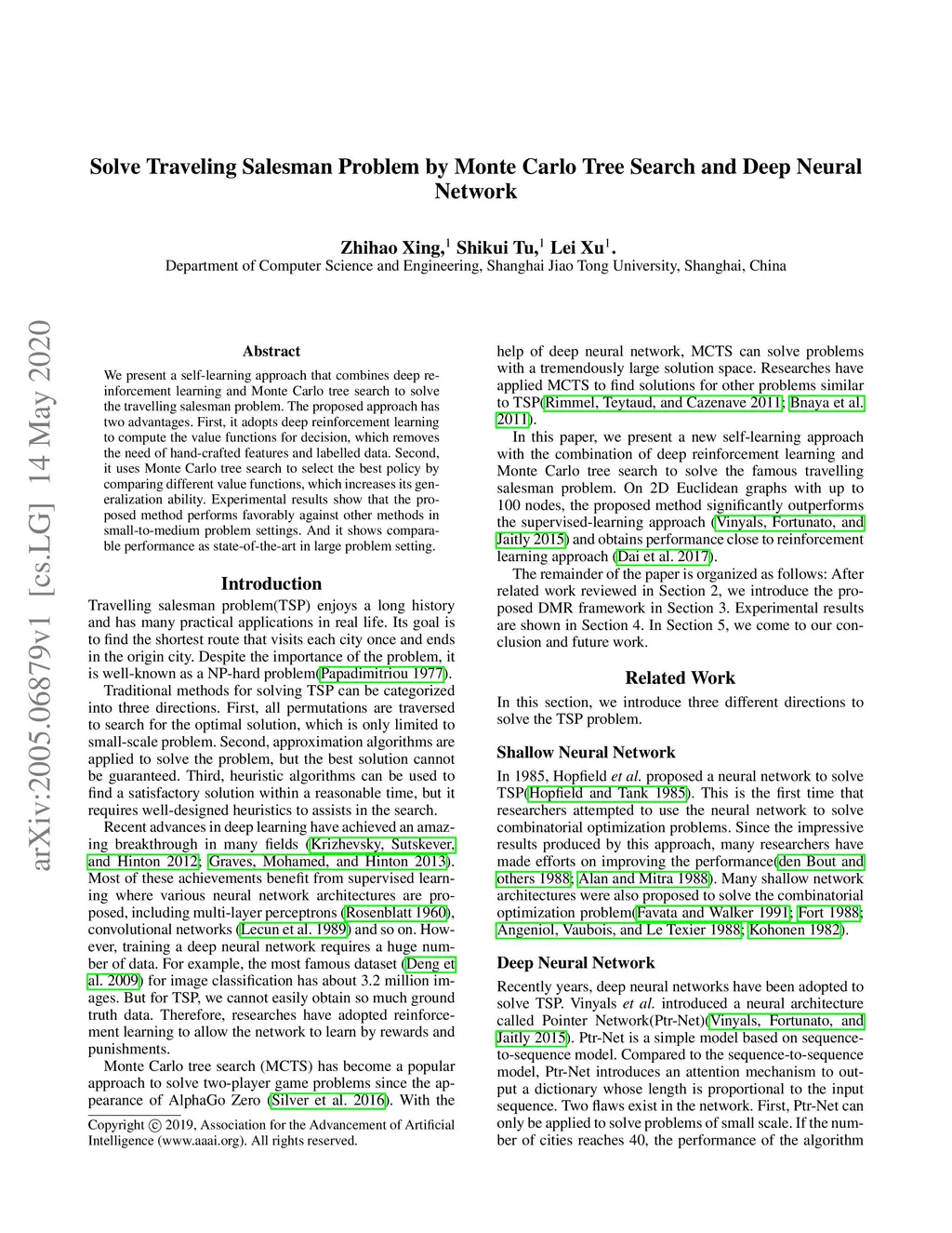 Solve Traveling Salesman Problem by Monte Carlo Tree Search and Deep
