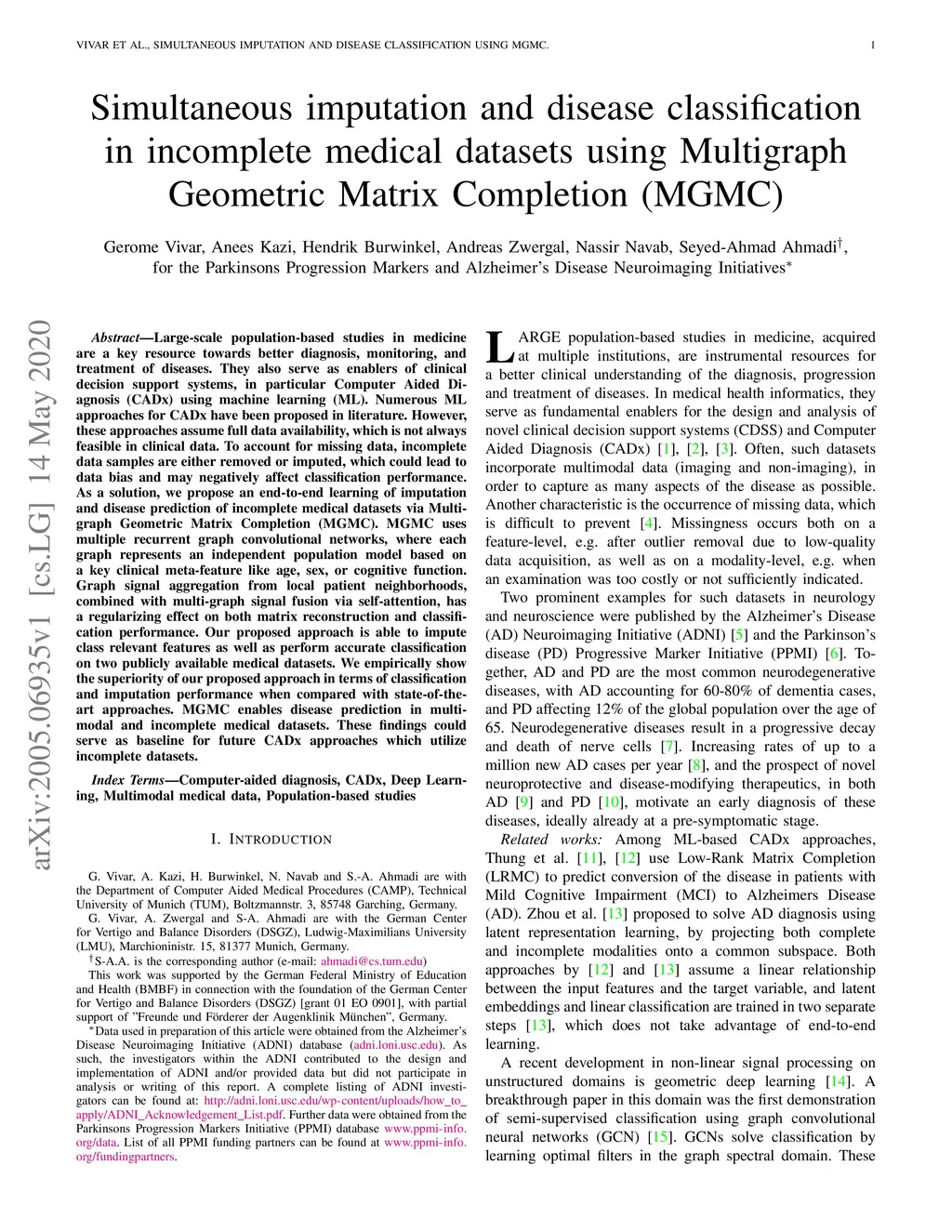 datasets using Multigraph Geometric Matrix Completion (MGMC)