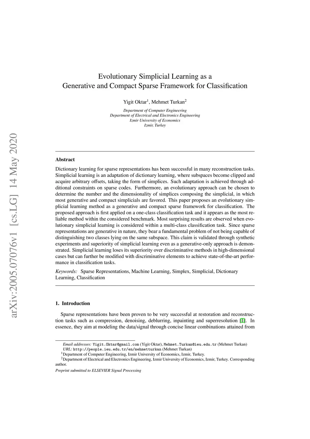 Evolutionary Simplicial Learning as a Generative and Compact Sparse