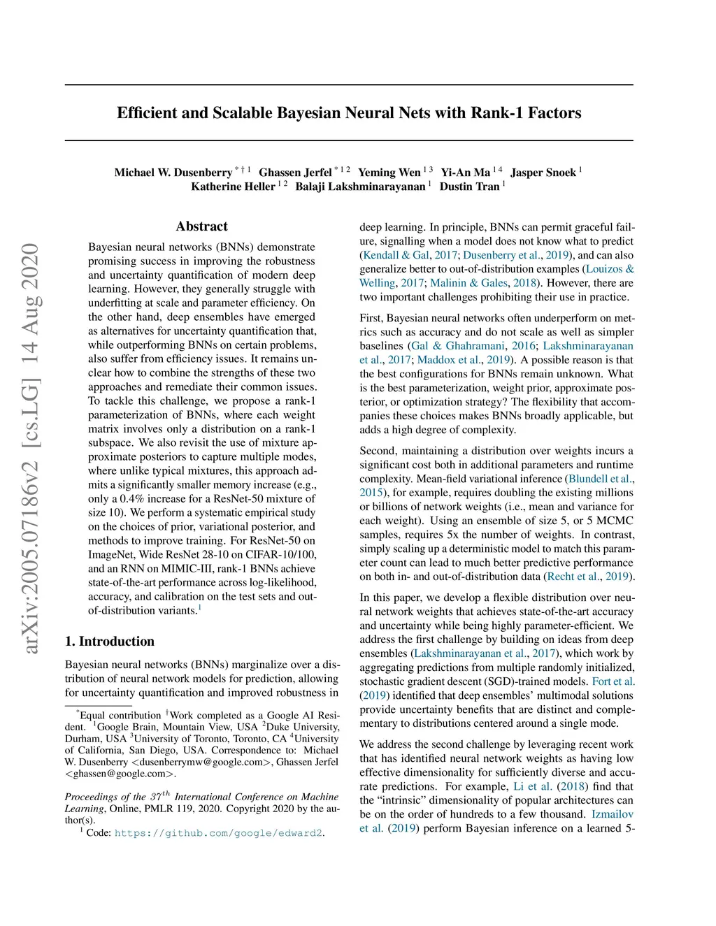 Efficient and Scalable Bayesian Neural Nets with Rank-1 Factors