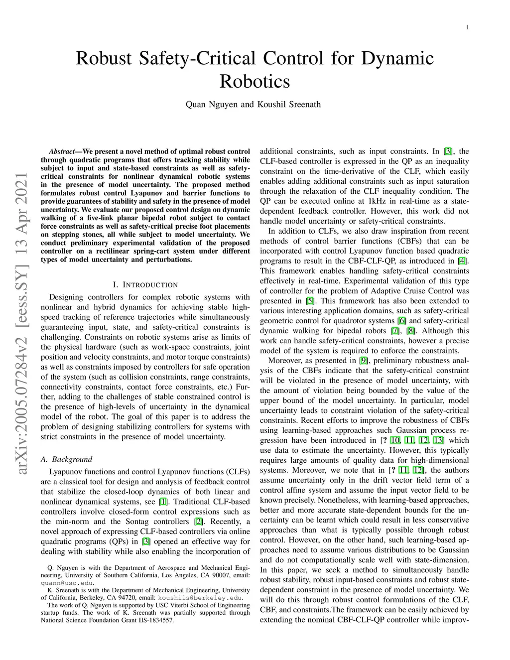 We present a novel method of optimal robust control through quadratic programs that offers tracking stability while subject to input and state-based constraints as well as safety-critical constraints for nonlinear dynamical robotic systems in the presence of model uncertainty. The proposed method formulates robust control Lyapunov and barrier functions to provide guarantees of stability and safety in the presence of model uncertainty. We evaluate our proposed control design on dynamic walking of a five-link planar bipedal robot subject to contact force constraints as well as safety-critical precise foot placements on stepping stones, all while subject to model uncertainty. We conduct preliminary experimental validation of the proposed controller on a rectilinear spring-cart system under different types of model uncertainty and perturbations.