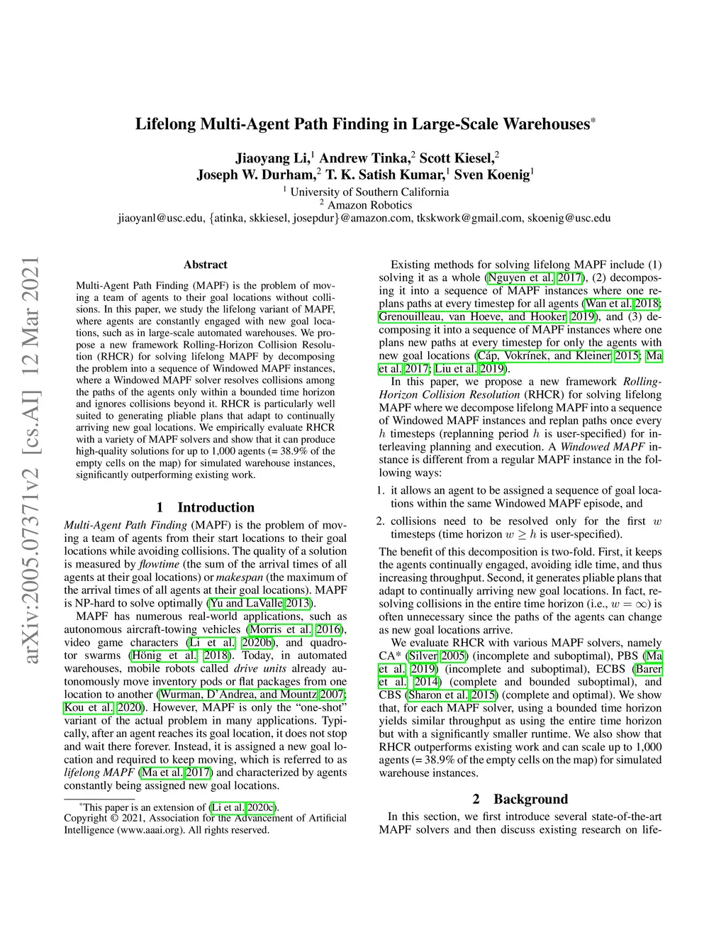 Lifelong Multi-Agent Path Finding in Large-Scale Warehouses