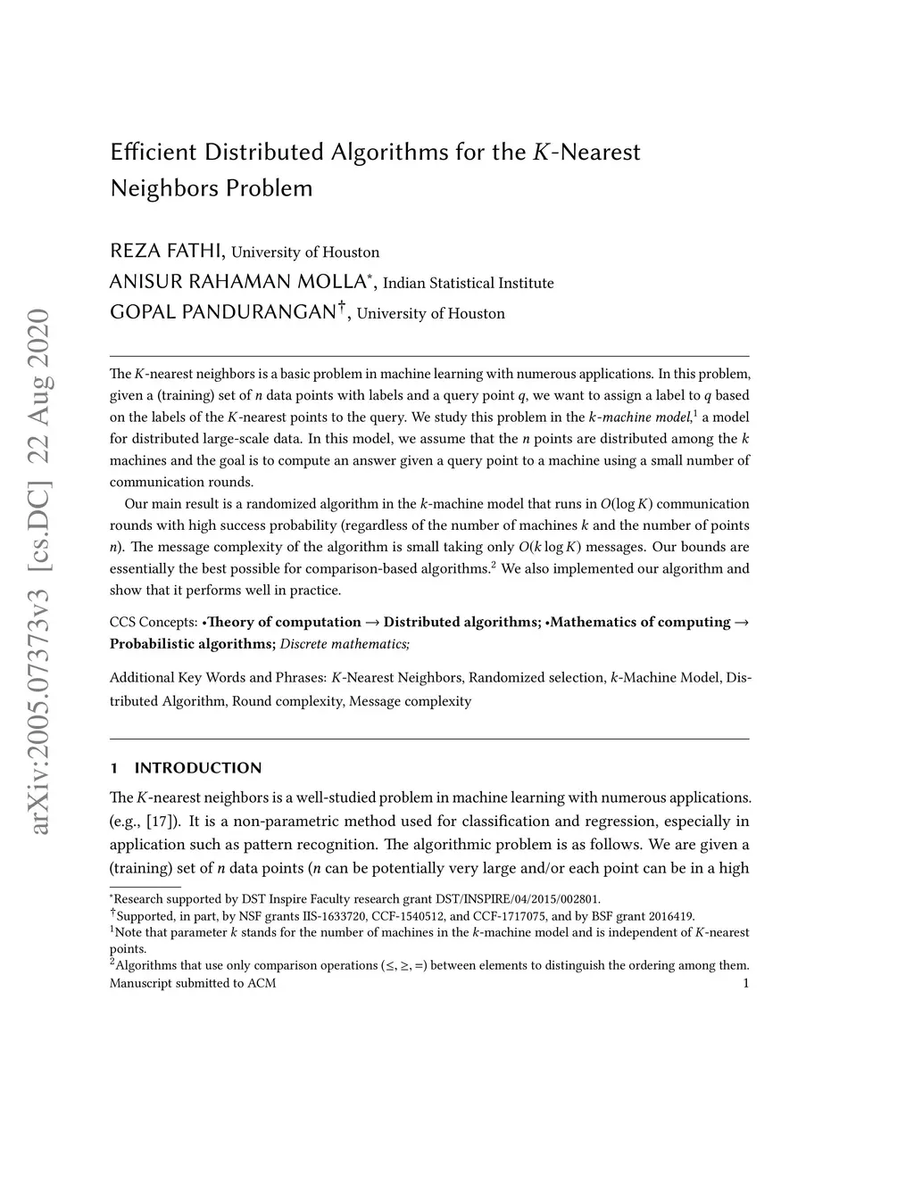 Efficient Distributed Algorithms for the -Nearest Neighbors Problem